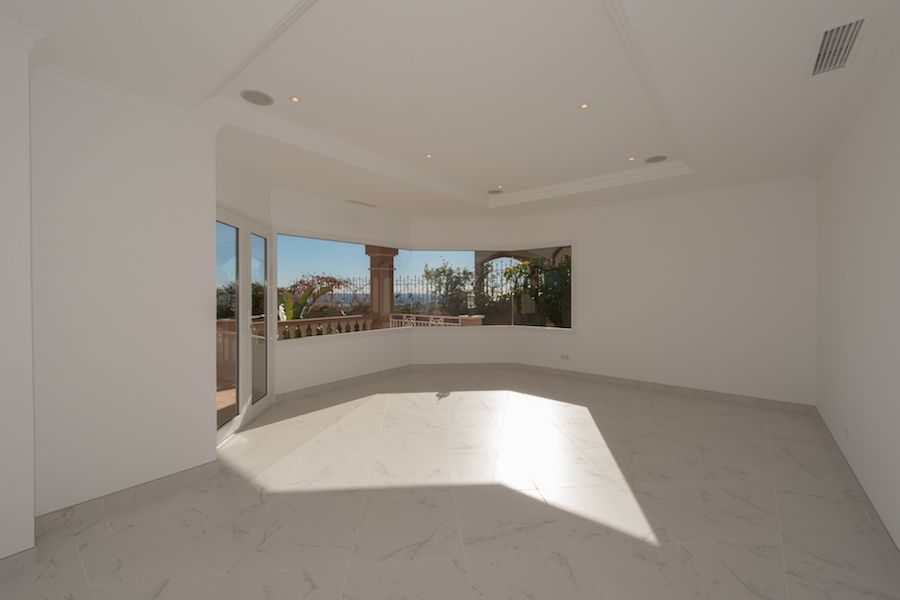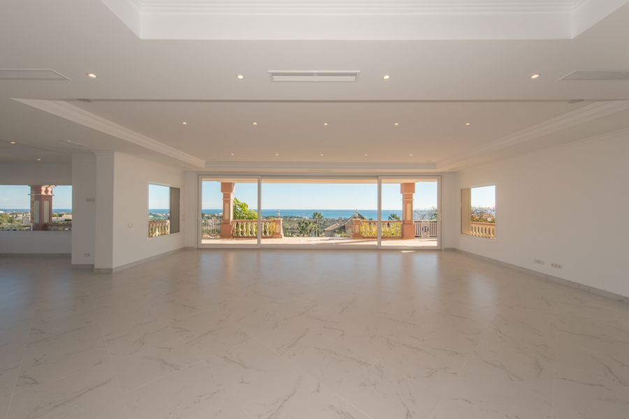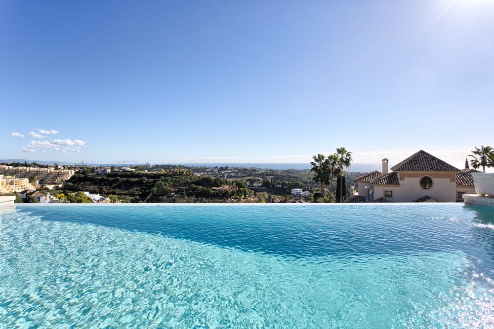 Fabulous, kvalitet bygget, sydvendt villa i Los Flamingos Golf Resort med vidunderlig 180 graders udsigt over Middelhavet og bjergene.