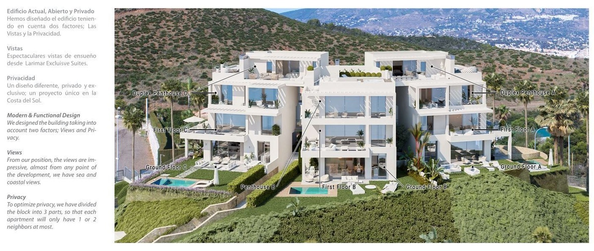 Larimar Exclusive Suites is perfectly located on top of a hill just minutes away from the main road and from the sandy beaches of Fuengirola.