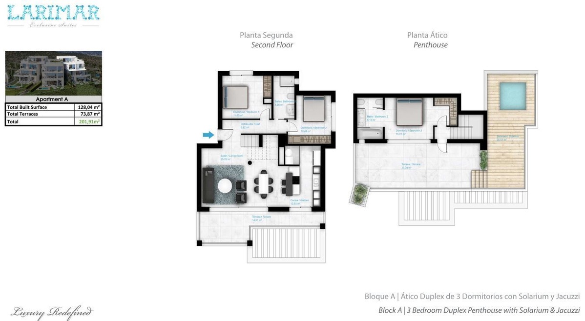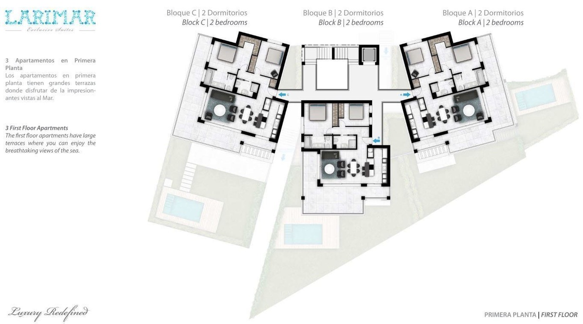 Eksklusive moderne luksuslejligheder og penthouselejligheder designet med henblik på optimalt privatliv og fantastisk udsigt over kysten.