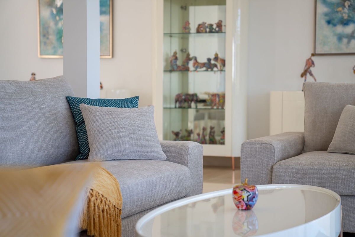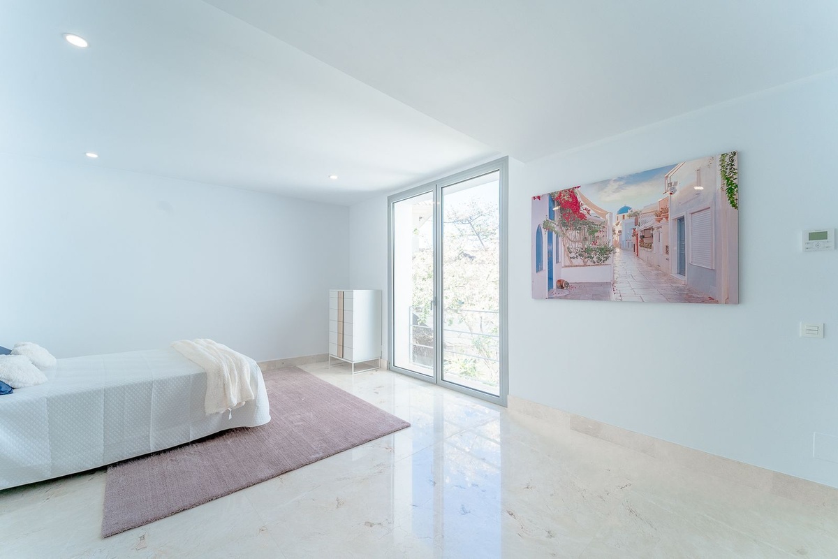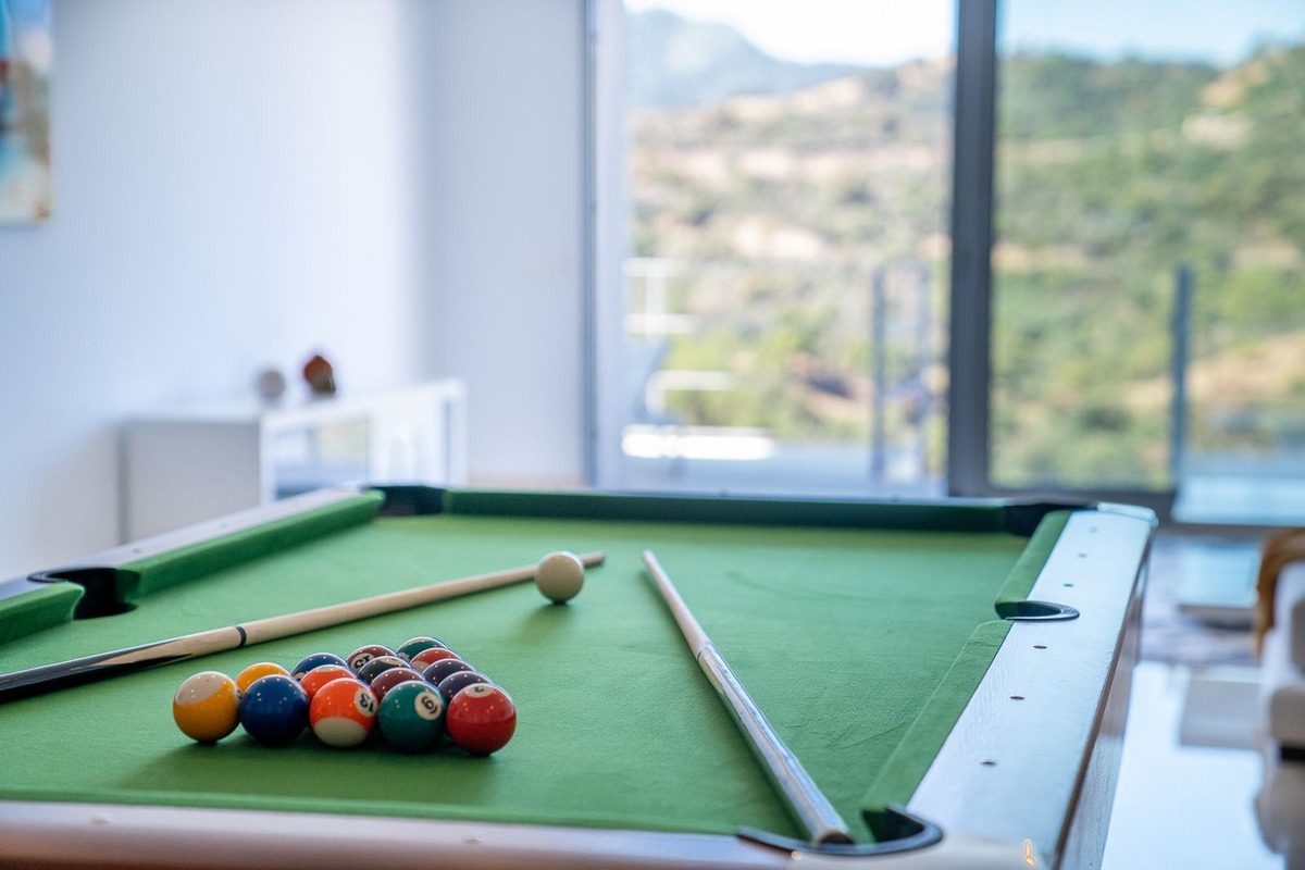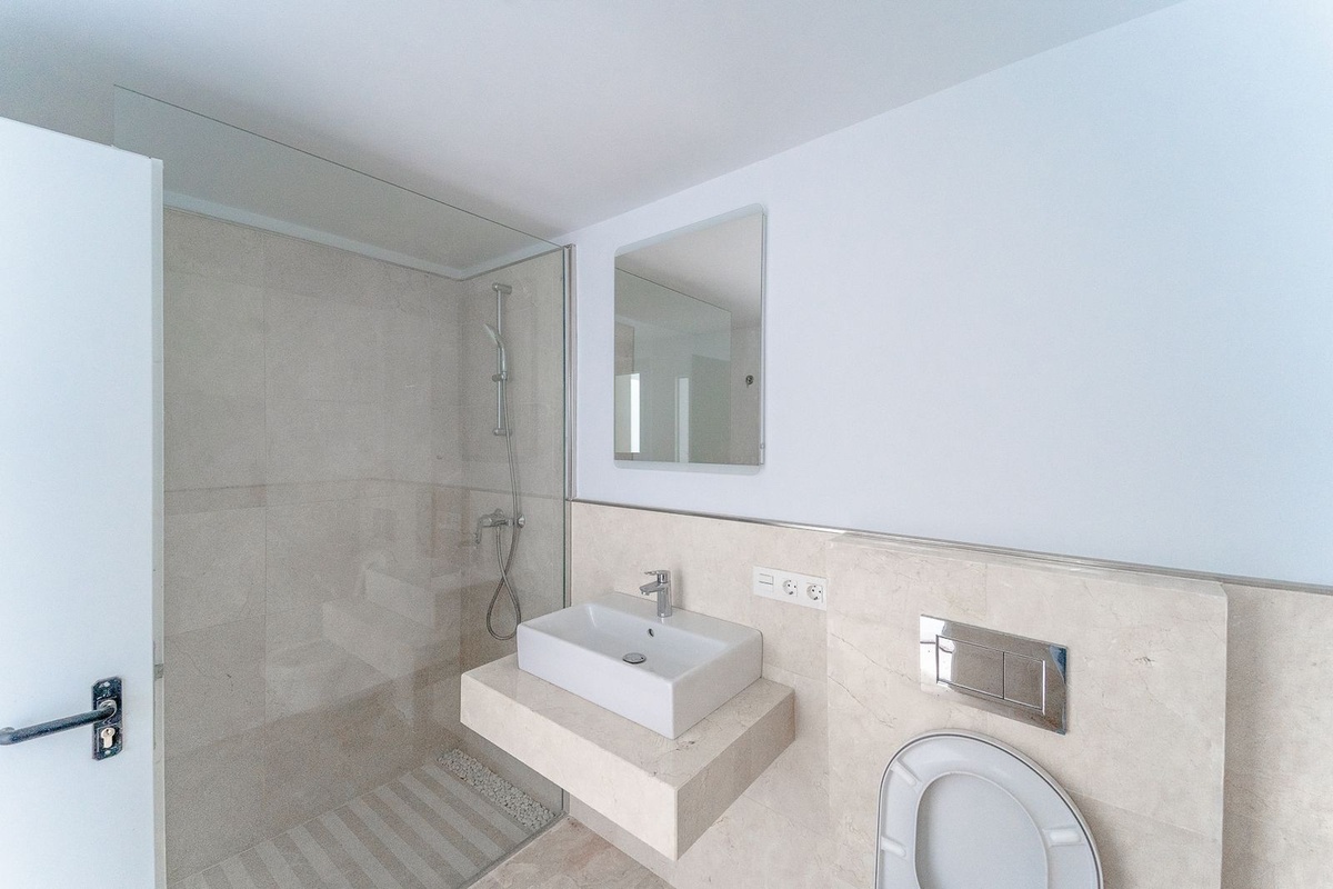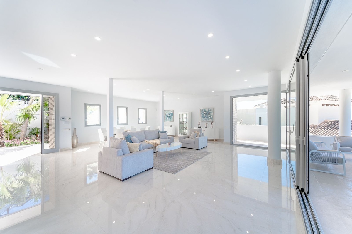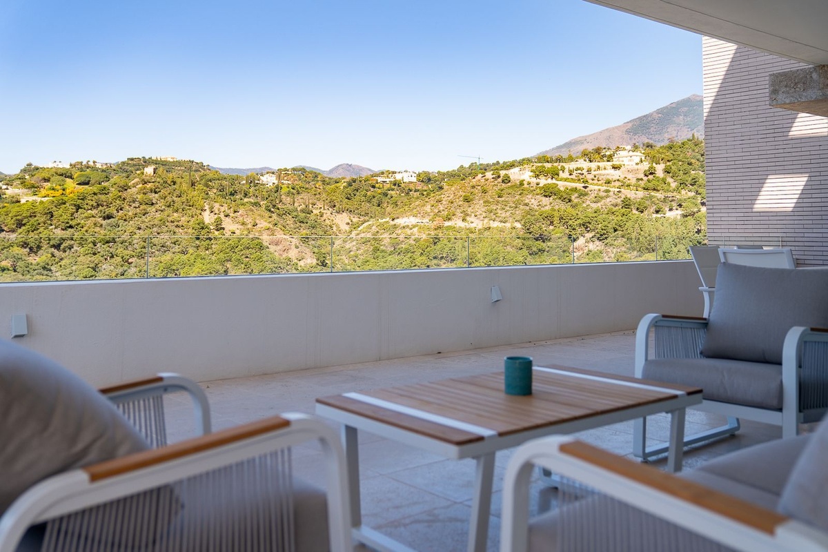 Newly built contemporary villa, finished on two floors plus basement, plus roof top, accessible by stairs and elevator. It is located in a natural environment, surrounded by golf and mountain, providing nice open views to those, panoramic sea view from the solarium and good sea view from some areas of the house. It is prepared to install amenities such as gym, spa area, cinema room and a wine room. It is a very spacious property, built with top quality materials, such as natural stone and Travertino marble floors. A very nice area with 24h security and a club house that offers an 18 holes golf course designed by Severiano Ballesteros, a tennis club, a bowling alley, restaurants, shops and a gym.