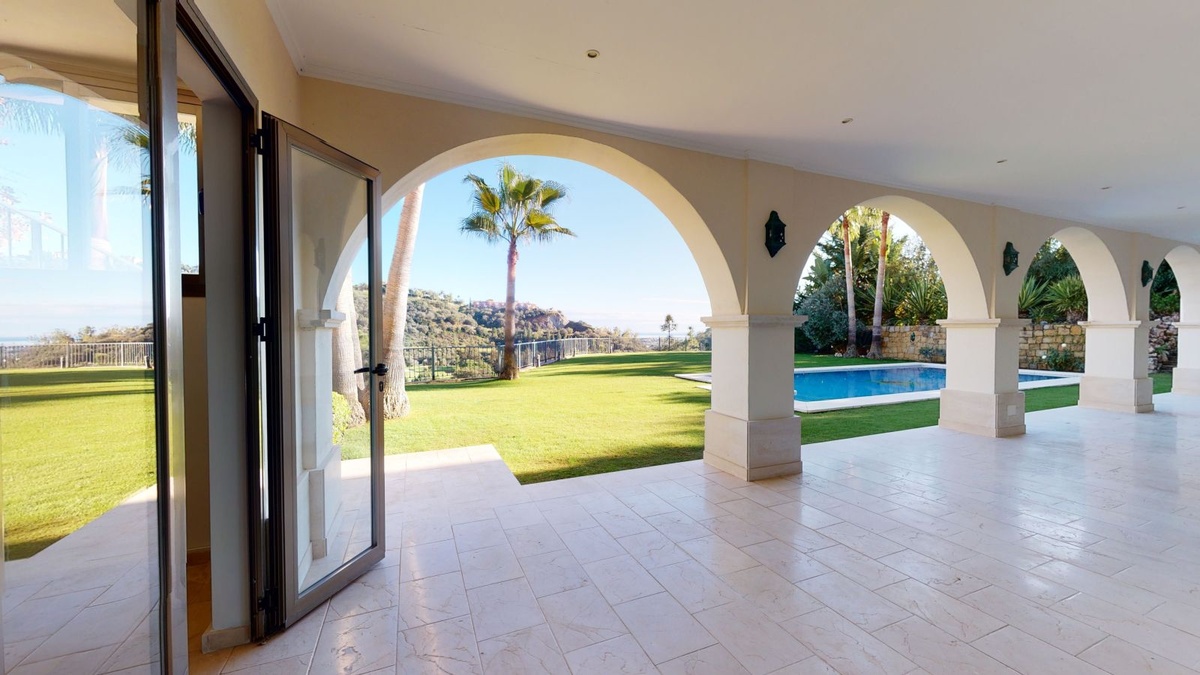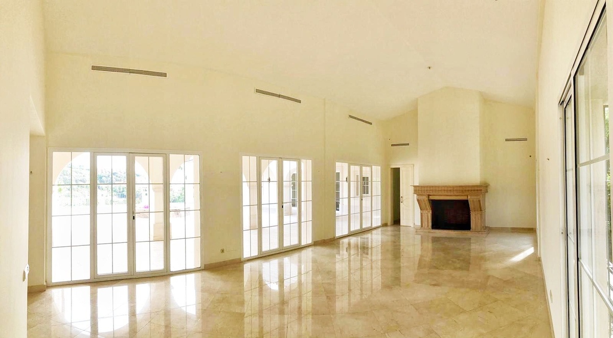 The best property in Los Arqueros for sale. Fully equipped luxury frontline golf villa located in Los Arqueros with big plot looking directly to the best area of the Community, looking directly to the golf course, the big Lake and the Mountain of La Concha de Marbella, and also the sea.