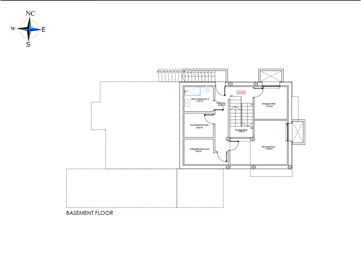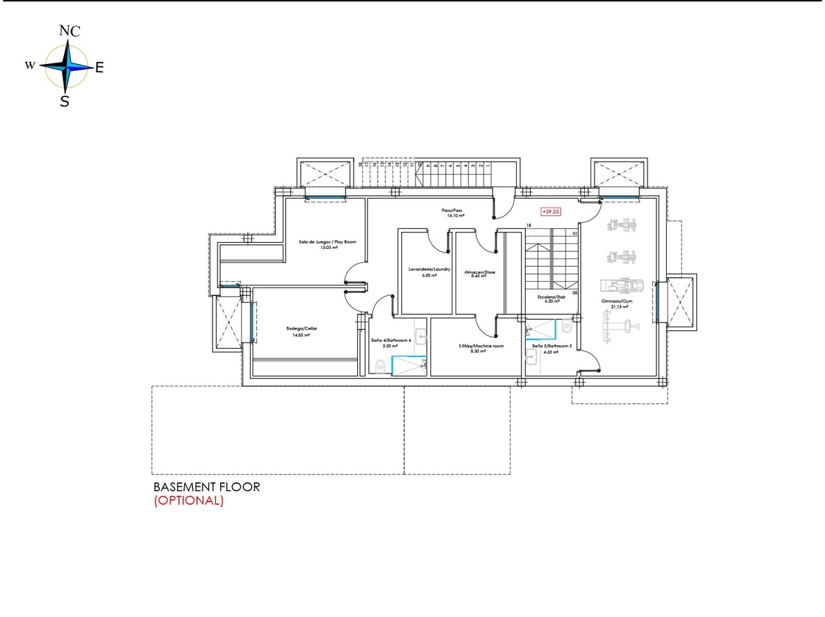 I kælderen i disse villaer er der et tredje gæstesoveværelse med et lille vindue med naturligt lys, et fitnesscenter og et biografrum samt et opbevaringsrum.