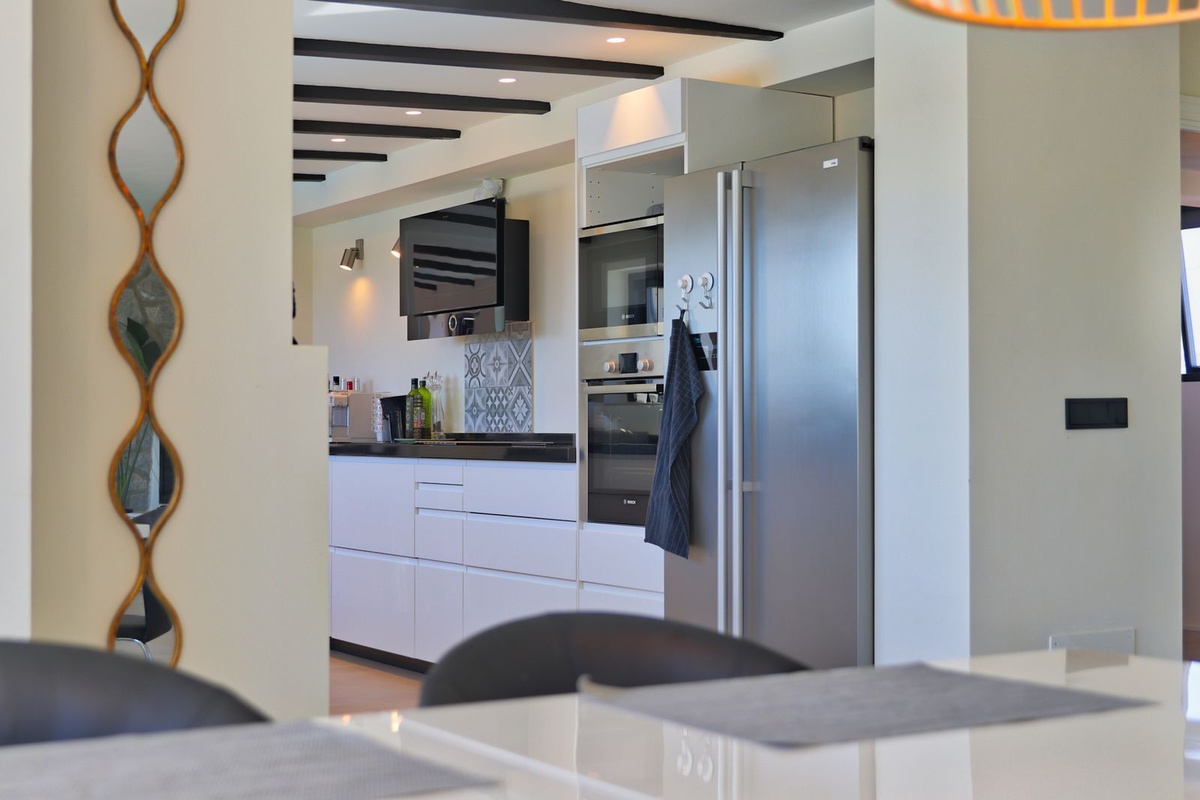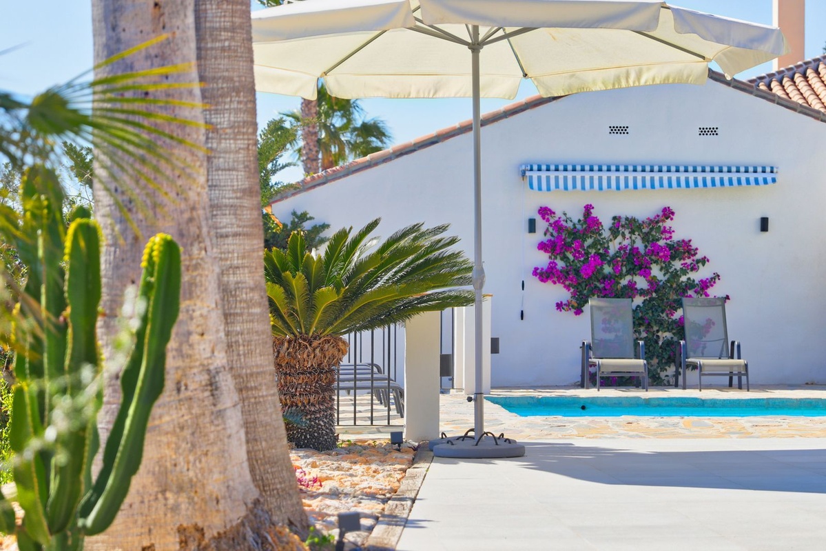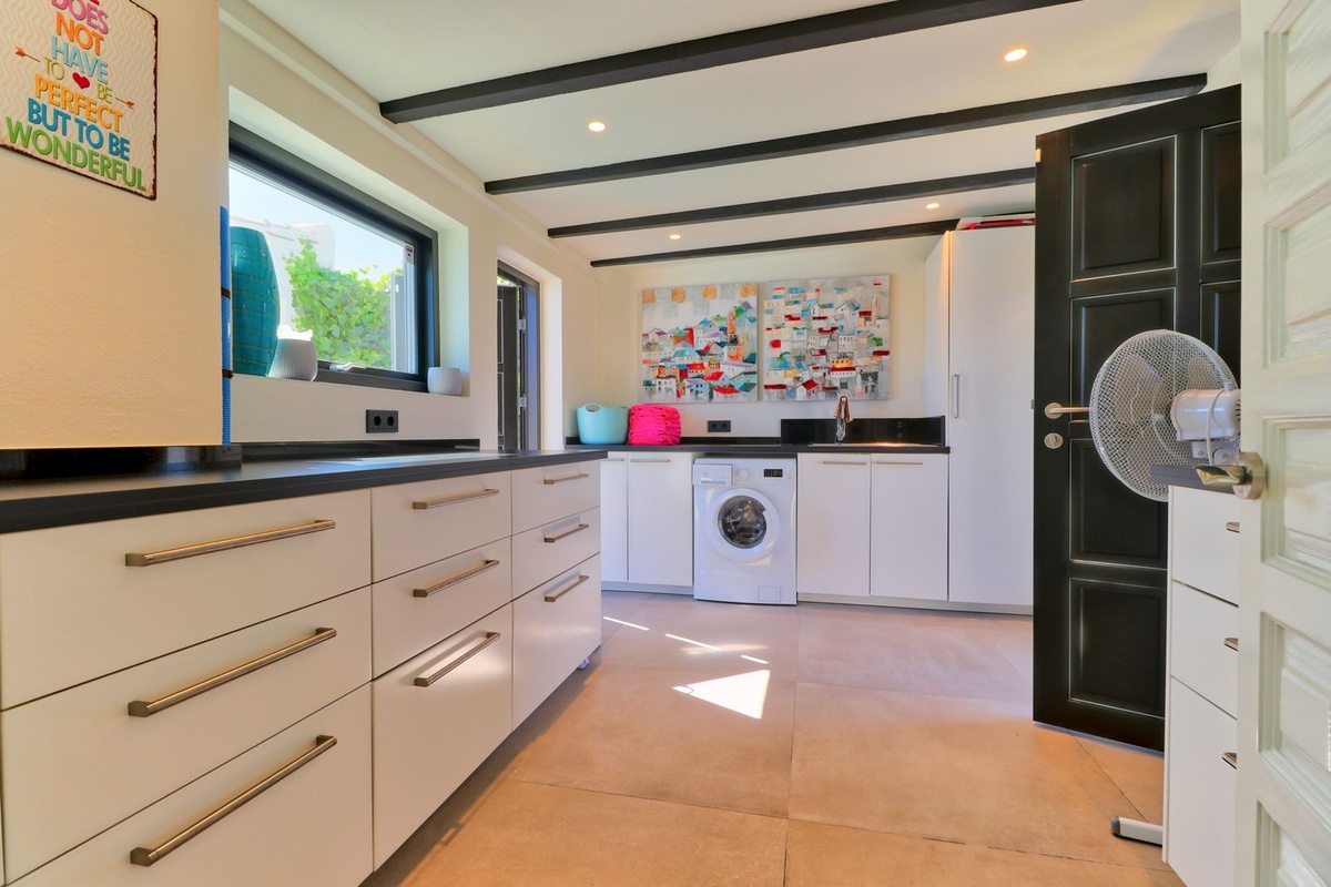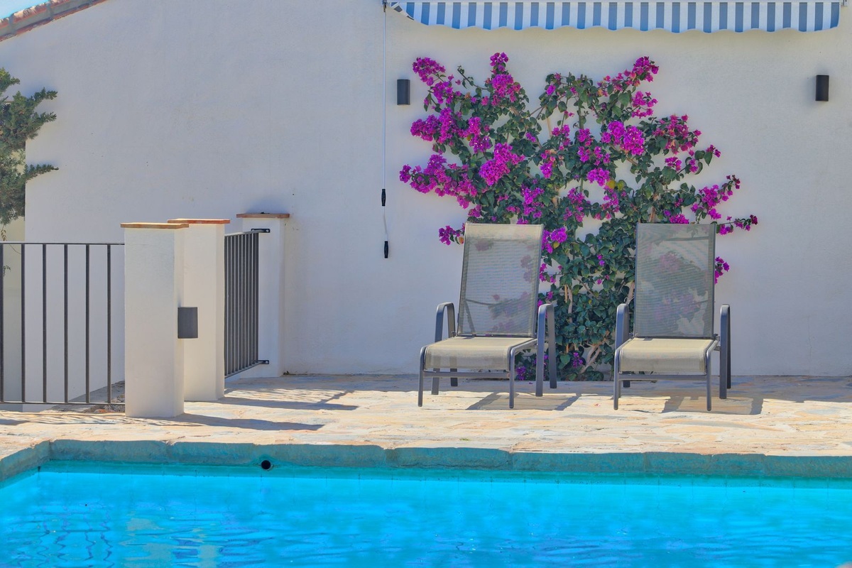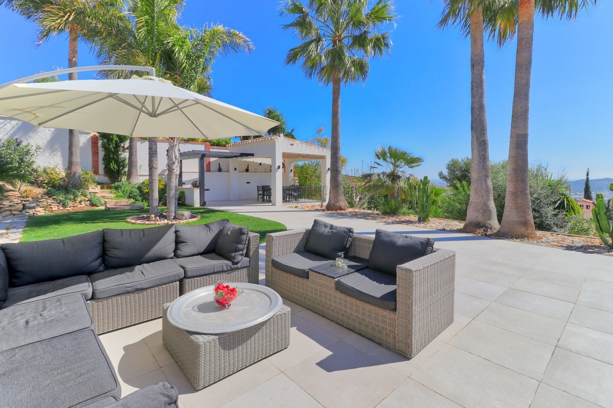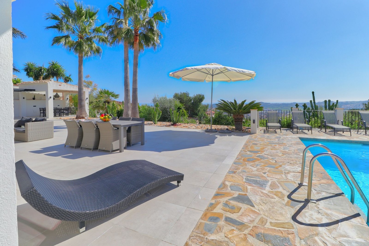 Forestil dig at nyde panoramaudsigten over havet fra din private have, hvor du også finder en forfriskende pool, der er perfekt til solrige dage. Med en grund på 1.000 m² har du rigelig plads til at slappe af og nyde naturen. Derudover inkluderer villaen en garage, indbyggede garderobeskabe og tjenester som internet, alarm og gartner i prisen.