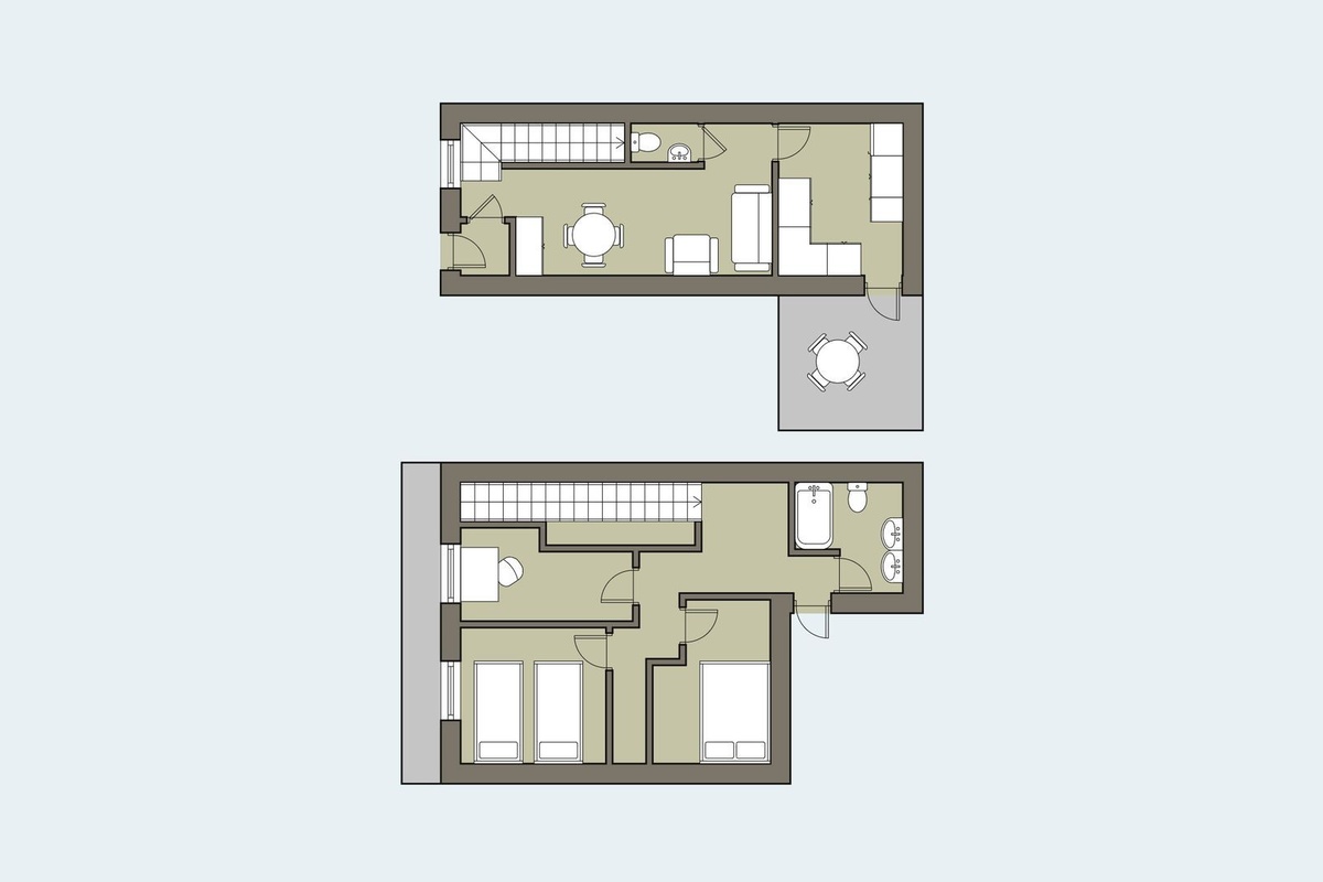 På øverste etage har vi tagterrassen med 360 panoramaudsigt over de omkringliggende bjerge. Det perfekte sted at nyde dejlig grill eller solbadning og nyde stedets ro.