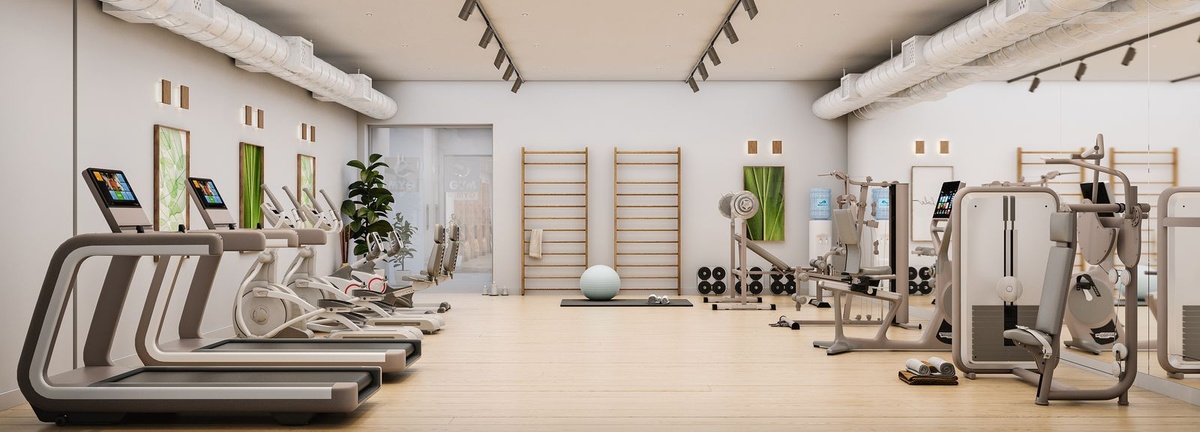 En fuldt udstyret, avanceret gymnastiksal