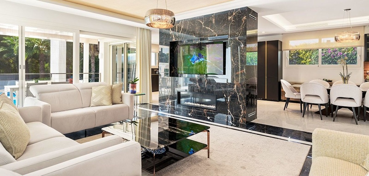 This newly renovated, seven-bedroom villa nestled on a sprawling 1770m2 plot between Aloha and Las Brisas presents a harmonious blend of sophistication and comfort.