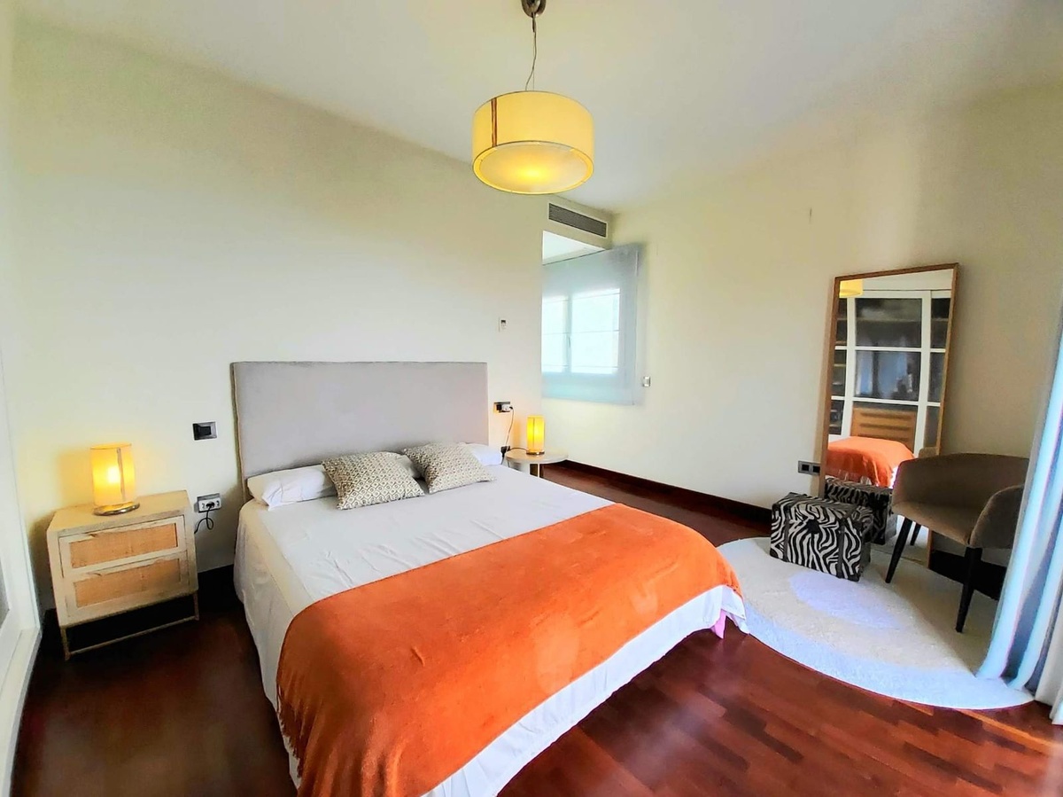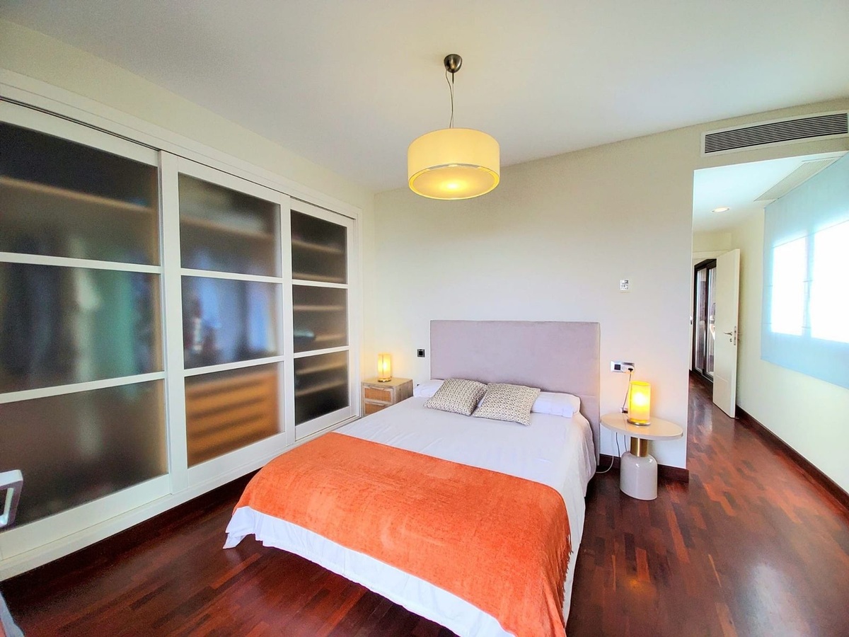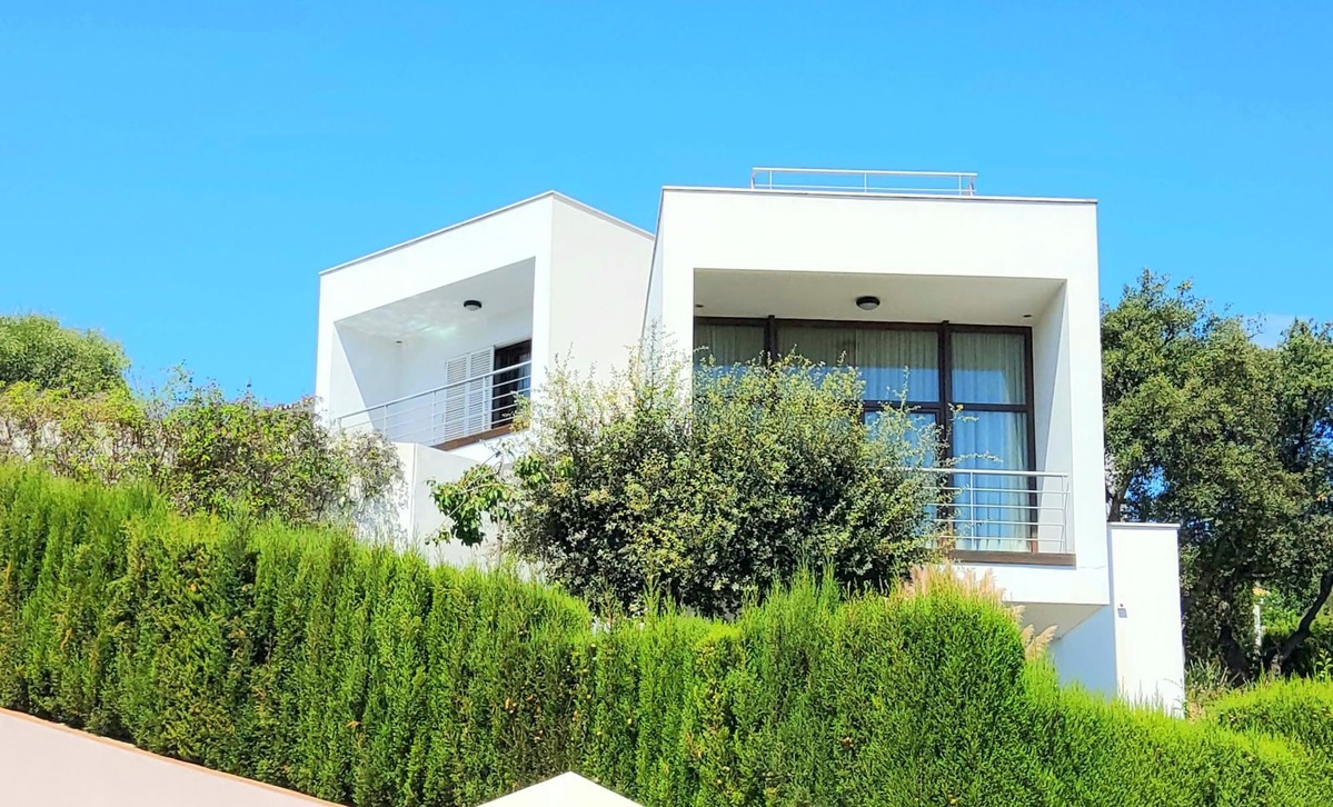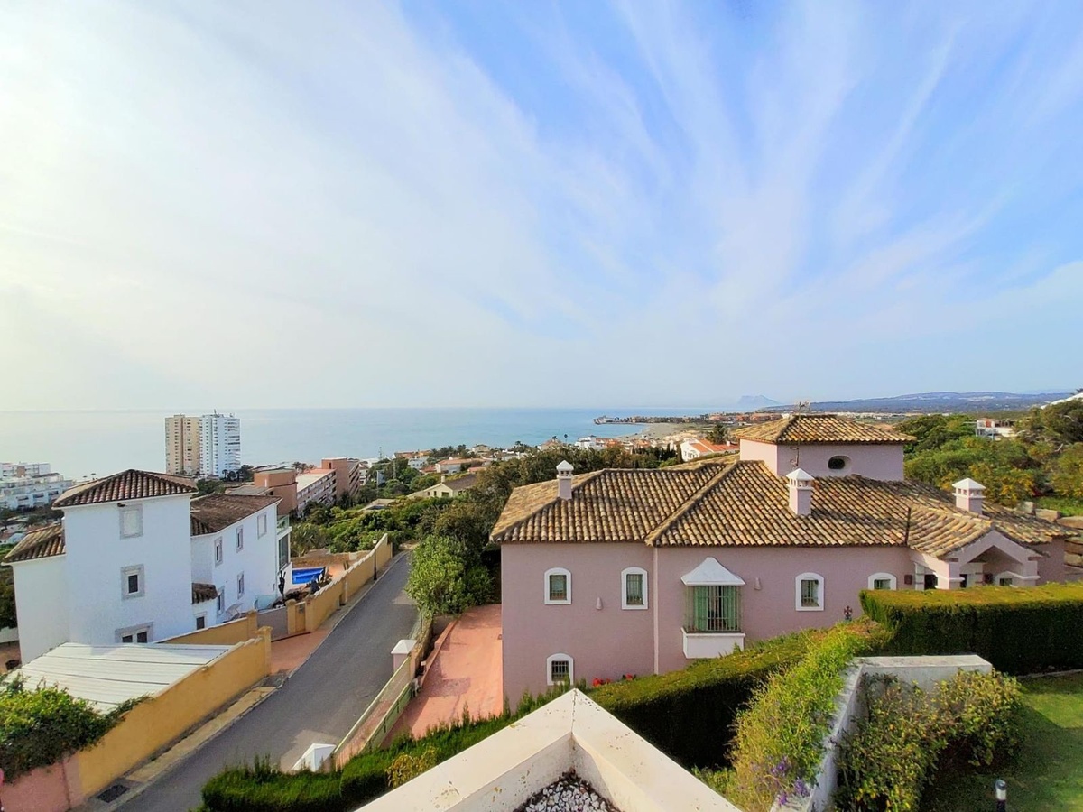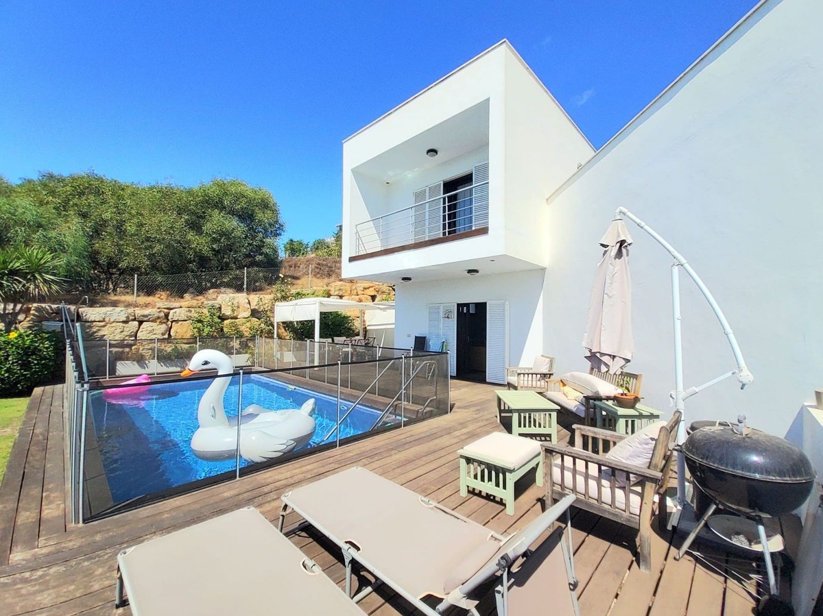 VIDUNDERLIG VILLA I MODERNE STIL MED HAVE, PRIVAT POOL OG SMUK UDSIGT OVER HAVET, GIBRALTAR OG AFRIKA. Med en privilegeret beliggenhed i et luksuriøst boligområde i Torreguadiaro, KUN 5 MIN GANG FRA STRANDEN og promenaden, som fører dig til den berømte havn i Sotogrande, hvor du finder et stort udvalg af barer, restauranter og fritidsområder. Prestigefyldte polobaner som Ayala eller golfbaner som Valderrama ligger 4 km væk, Gibraltar lufthavn ligger 10 km væk, og Marbella ligger 30 km væk. Denne smukke ejendom er fordelt på tre etager, bygget med materialer af højeste kvalitet og fremragende finish. Nyd godt lys takket være de store vinduer i hele huset og dets SYDLIGE ORIENTERING. På første sal finder vi den rummelige stue-spisestue med et integreret køkken, alt sammen i en åben planløsning, meget behagelig og ryddelig. På øverste etage ligger værelserne, hvoraf det storslåede soveværelse har et elfenbensfarvet marmorbadeværelse med jacuzzi. Alle værelser er udstyret med specialfremstillede skabe i hvidlakeret træ, en minimalistisk og velordnet følelse, som går igen i hele villaens design.
