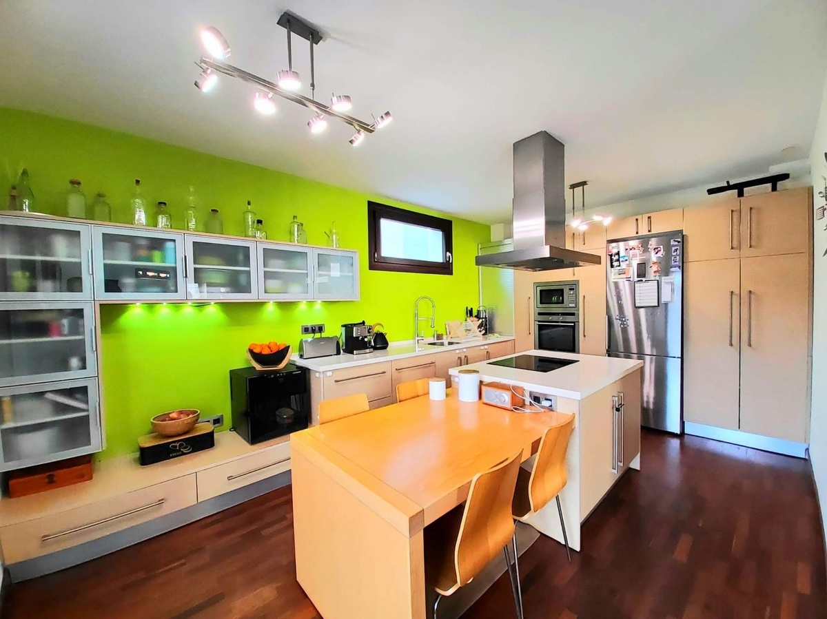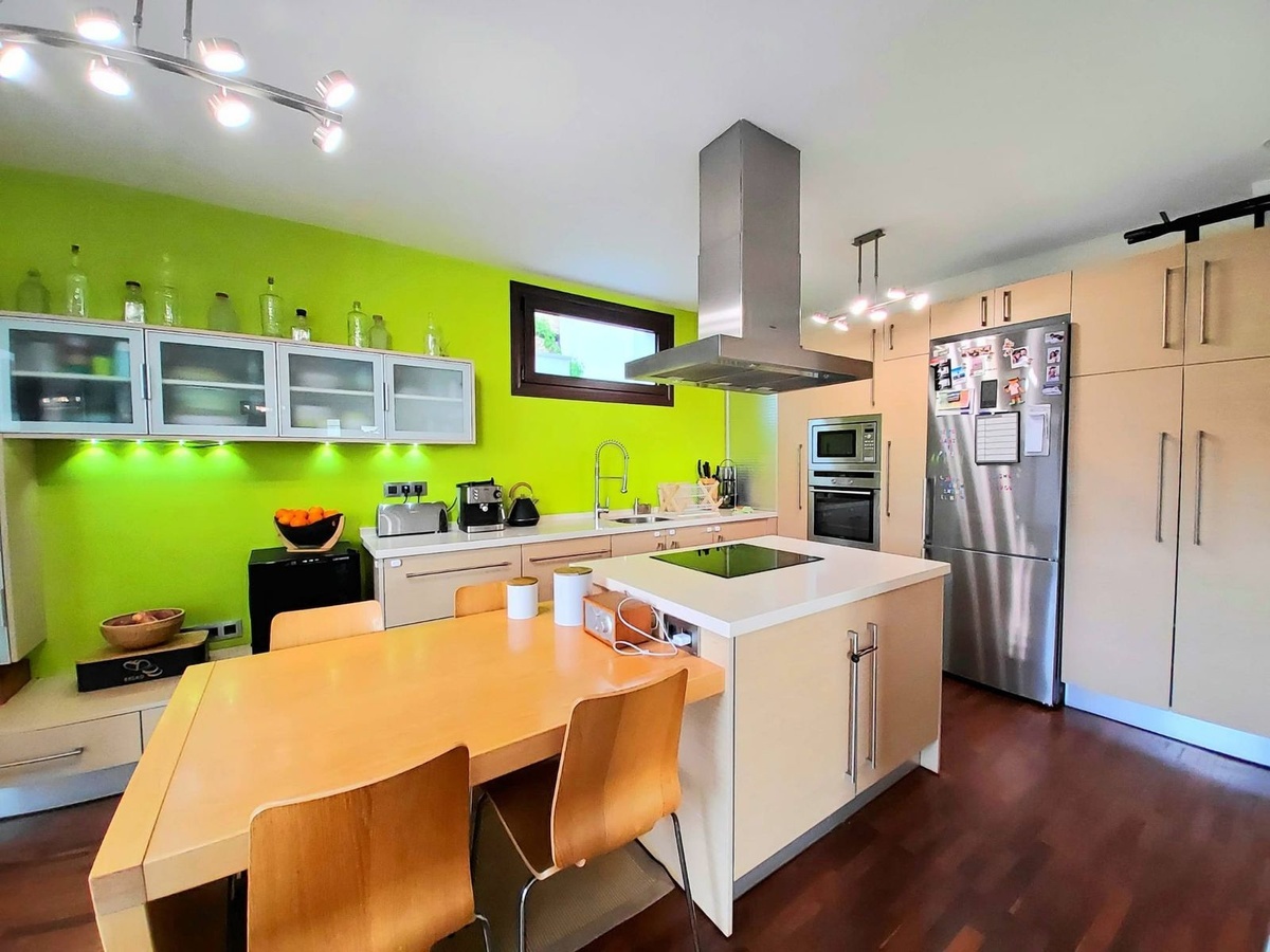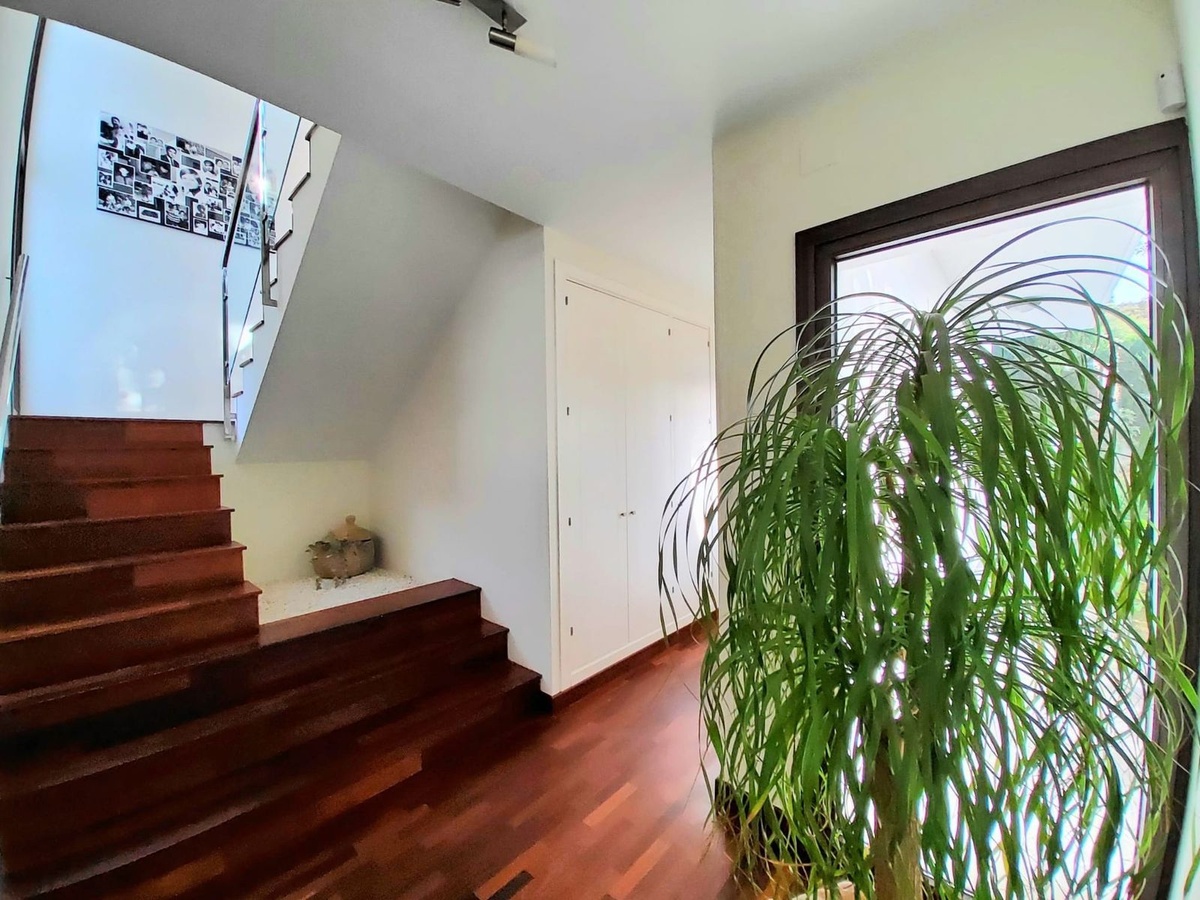 Garage til 2 bilpladser / aircondition og varmepumpe i hele huset, ud over vandforsyningen har huset en cisterne Alle gulve inde i huset i stueetagen og første sal er lavet af træparket IPE.