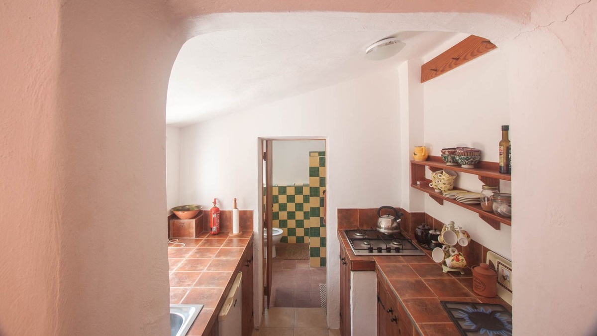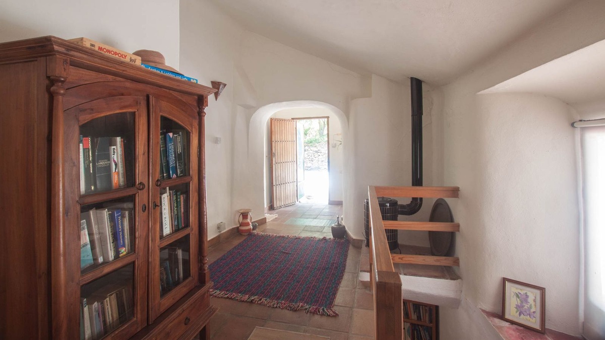 This open-plan kitchen connects via a staircase to the first floor, with a master bedroom and a bathroom, both in Moorish style, a further two bedrooms, a laundry area and a storage area for the weaving mill, again this area could be repurposed for accommodation.