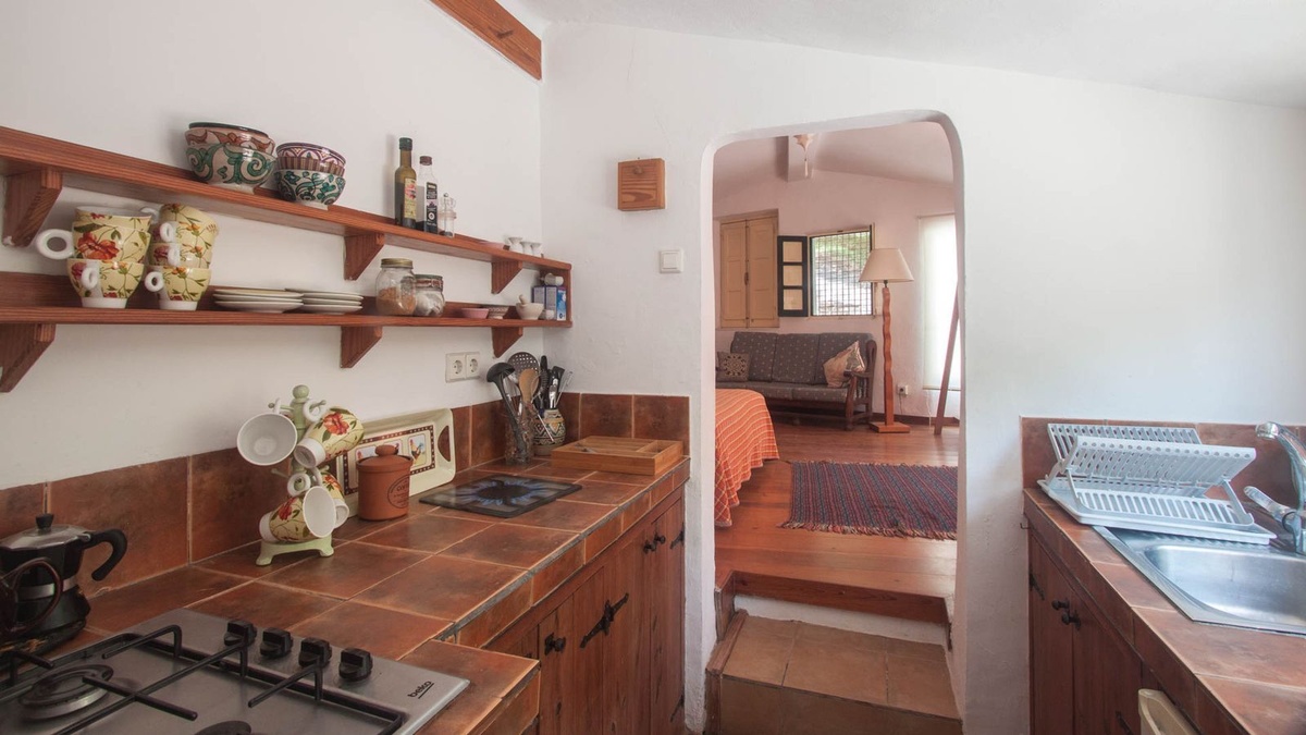 The separate guest house has a private terrace with beautiful views of the property's garden, a spacious bedroom, a fully equipped kitchen and a bathroom.