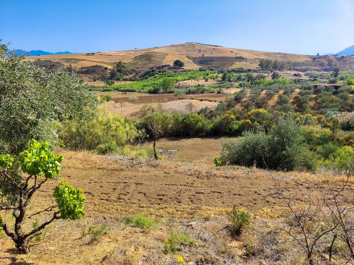 Ubebygget jord til salg i området La Jara, Coín. 13500 m² til landbrugsbrug, har omtrent rektangulær form på 150x88 meter, med bred adgangsvej foran.