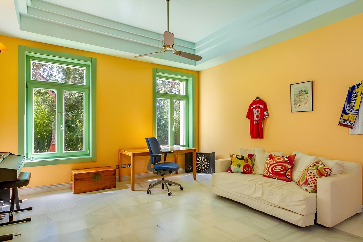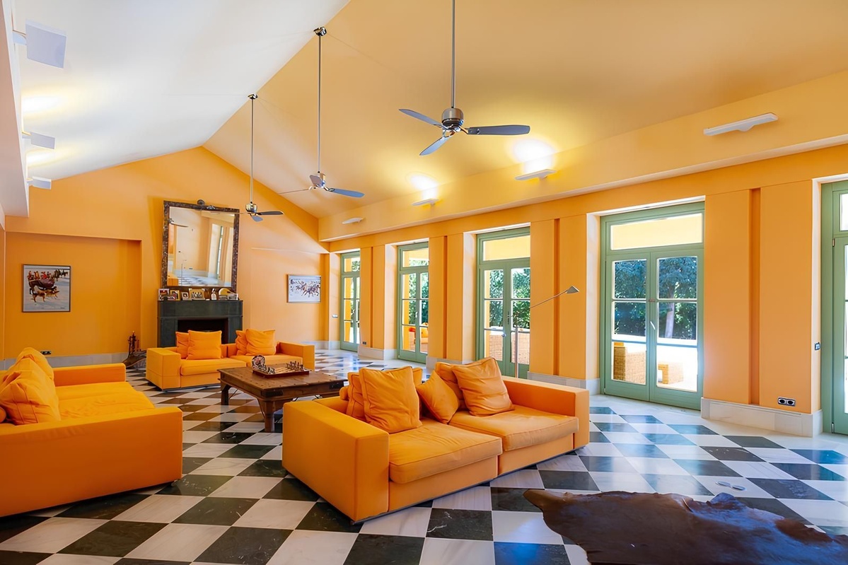Sotogrande Alto: Front line Golf Valderrama, 5/6 bedroom mansion style villa of 1000m2 living area on one level on a very private plot of 6200m2. South facing terrace and pool. Unique property entered through a courtyard with fountain. Entrance door opens into a double height foyer. Very spacious living room leads to a wonder dining room which adjoins a huge designer kitchen. Gym, Sauna, office, utility/laundry. Under floor heating. 4 car garage.