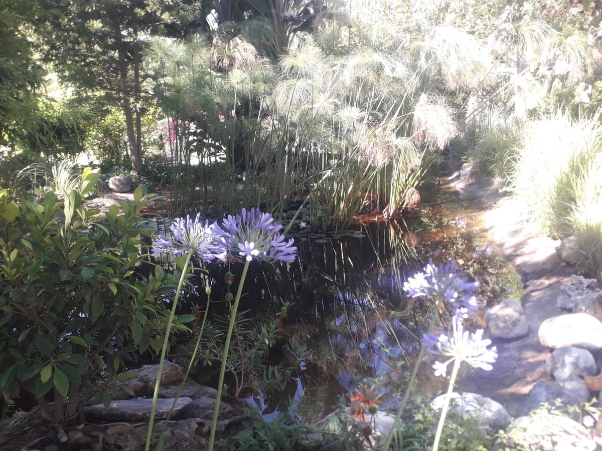 En fantastisk tropisk have omgiver den store kommunale pool.