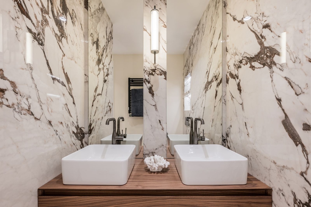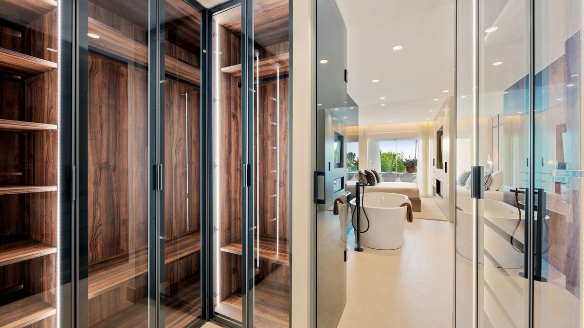 Det store soveværelse er et luksuriøst tilflugtssted med eget badeværelse i åbent plan, rummeligt walk-in-closet og egen direkte adgang til hovedterrassen.
