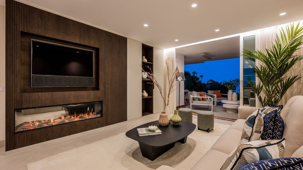 Hver detalje er blevet nøje overvejet, fra specialbyggede garderobeskabe og elegante gulve til den elektriske pejs og premium Bang & Olufsen lydsystem.