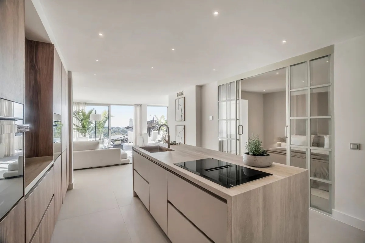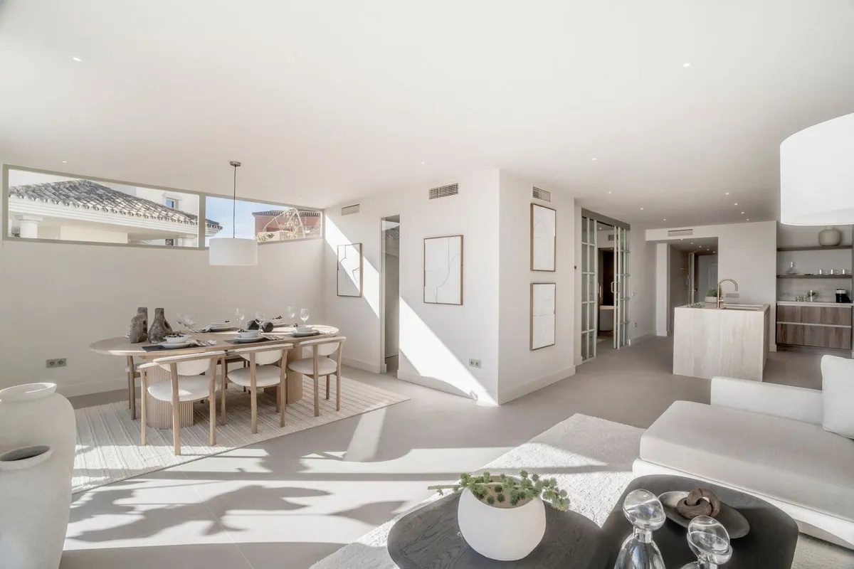 Med sin private pool, spektakulære havudsigt og en førsteklasses beliggenhed i Nueva Andalucía er denne lejlighed en sjælden perle, der legemliggør det bedste fra Marbella -livsstilen.