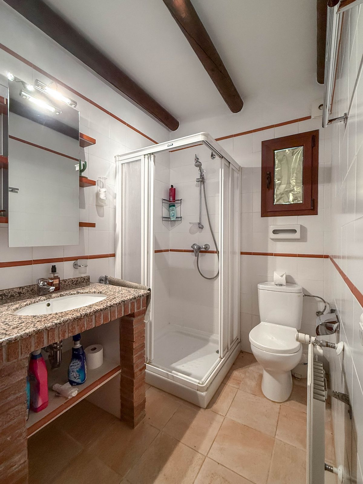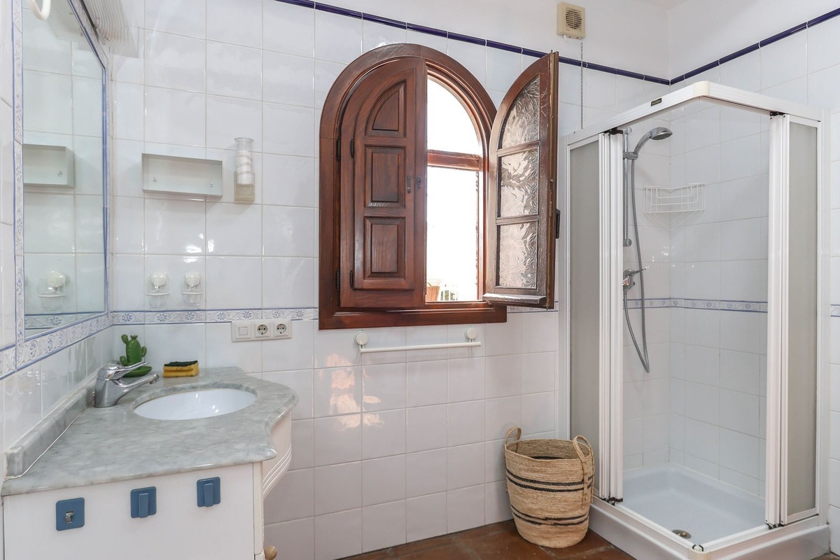 Nedenunder finder du en anden separat lejlighed med tekøkken, der fører direkte til det skyggefulde udekøkken og spiseplads. På siden af udekøkkenet med en separat indgang er der en anden selvstændig suite med lille opholdsstue og bruges i øjeblikket som et soveværelse over spild, et soveværelse og eget badeværelse, der er direkte adgang herfra til udekøkkenet.