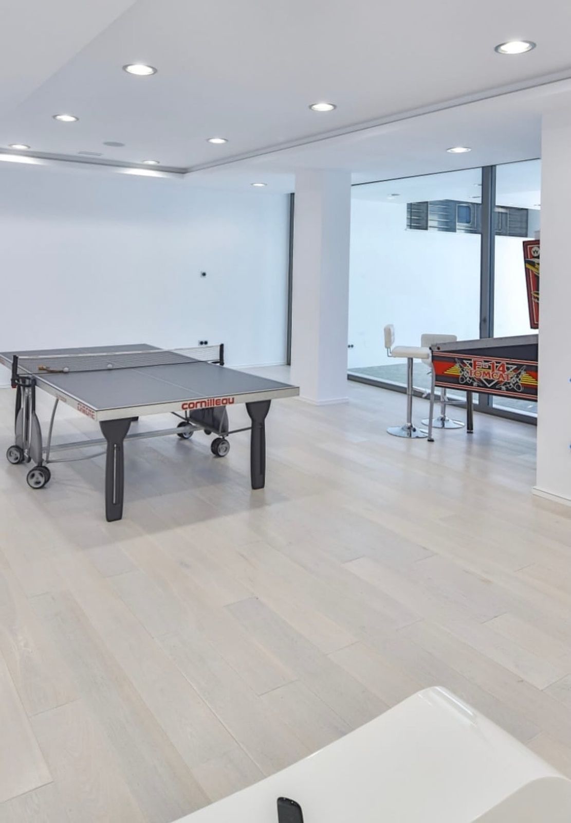We show you one of the best and exclusive properties throughout Spain, in the Sotogrande area. This unique property nestled in a plot of 9,542 m2 has all the leisure facilities that you can imagine, such as disco, gym, spa, playground, acoustic recording room, cinema, tennis track, bowling and a length etc. .. its 3,850 m2 built are divided into 6 luxury luxury villas with suite bathrooms, living room, kitchen, terrace and private garage for two cars. As a central link to these six independent properties we find a magnificent construction with a plant divided into a superb lounge of more than 150m2 with capacity for 50 diners, TV room, board game room, and professional industrial cuisine. The lower floor is fully dedicated to leisure with pool room, compressed air shooting area, professional bowling, gym and complete spa. In the outer zone you can enjoy a unique and unimaginable pool in Europe that becomes a magnificent marble floor when it is required, falling its waters through a waterfall.