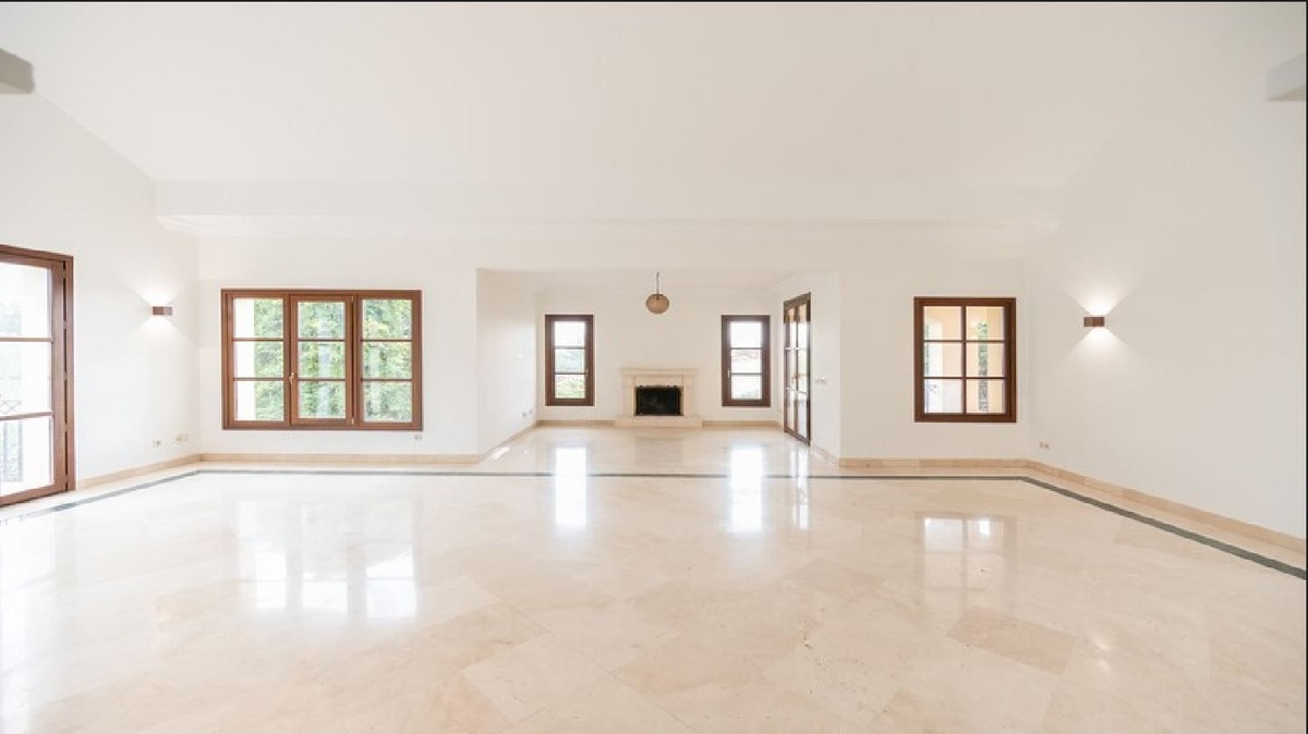 I stueetagen leder entréen ind i en lys og indbydende stue med pejs og store vinduespartier, der oversvømmer rummet med naturligt lys.Opholds- og spiseområdet åbner direkte ud til haven, swimmingpoolen og et stort udendørsområde med grill - perfekt til at underholde og nyde middelhavslivsstilen.