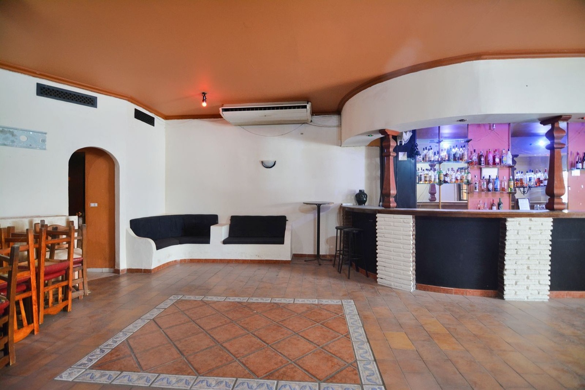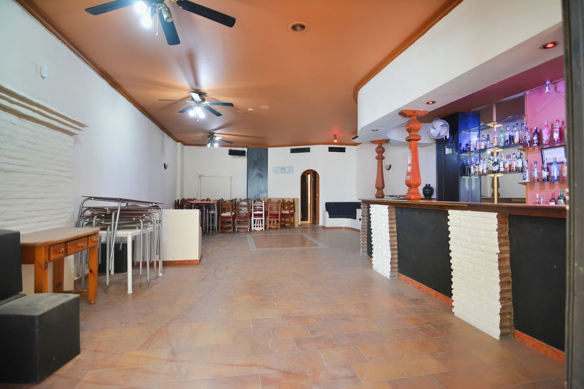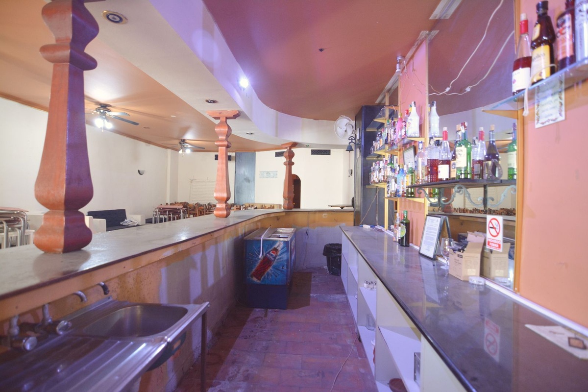 The premises currently feature an open-plan layout, drinks bar, two bathrooms, and a storage room.