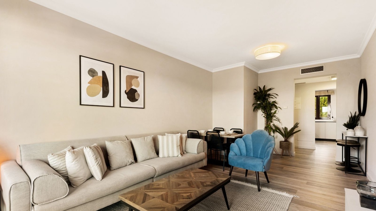 Denne lejlighed ligger i en privat oase omgivet af frodige grønne områder og luksusbyggerier og er en drøm for enhver golfentusiast.