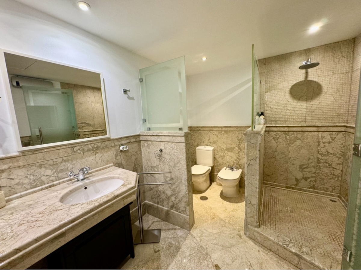 Lejligheden er fuldt møbleret med italienske møbler af god kvalitet. Indglassede terrasser, cremefarvede marmorgulve.