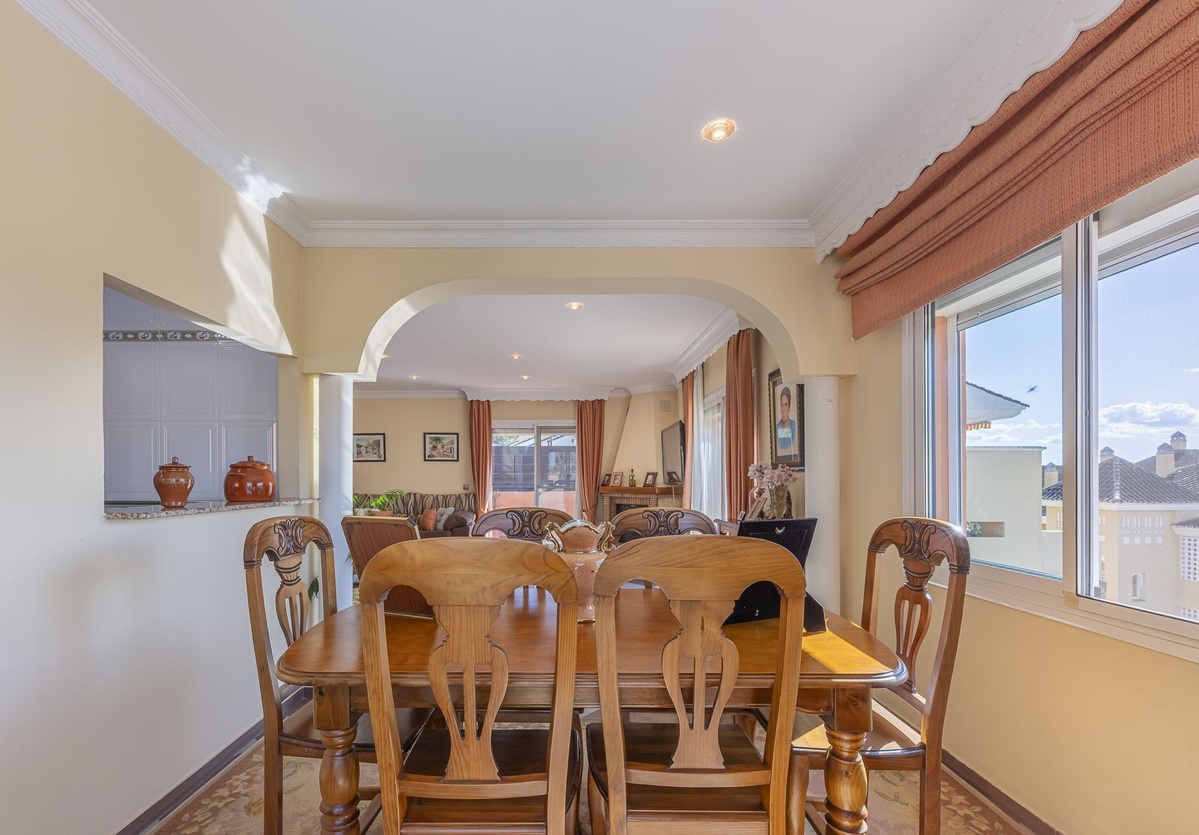 Hovedområdet ligger på øverste etage og skiller sig ud for sin lyse stue, der inkluderer en spiseplads og adgang til en balkon.