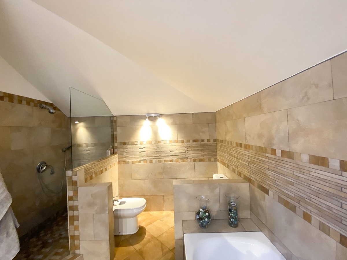 Haven byder på privatliv, moden vegetation og en stor swimmingpool omgivet af en anti-termisk terrasse plus siddeområder med markiser, natbelysning, frugttræer og plads til en urban eller vertikal køkkenhave, der er ideel til både at slappe af og være vært for gæster Interiøret er lyst og elegant med to rummelige stuer, den ene med pejs, højt til loftet, marmorgulve og store vinduer