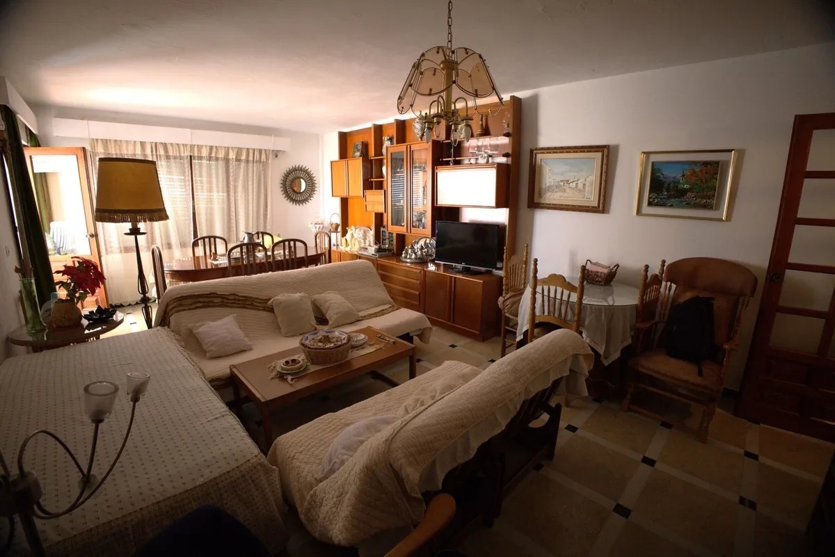 Apartment in the Puerto Deportivo area of Estepona, with stunning panoramic views, in a well-known urbanization with gardens, swimming pool, parking, surrounded by all kinds of services such as restaurants, bars, shops and just a 5-minute walk from Cristo beach. The apartment consists of 3 good-sized bedrooms, two bathrooms, living room, kitchen, laundry room, and closed terrace with Lumon. Great investment opportunity, the property needs complete refurbishment. Don't miss the chance for a great investment, come and see it.