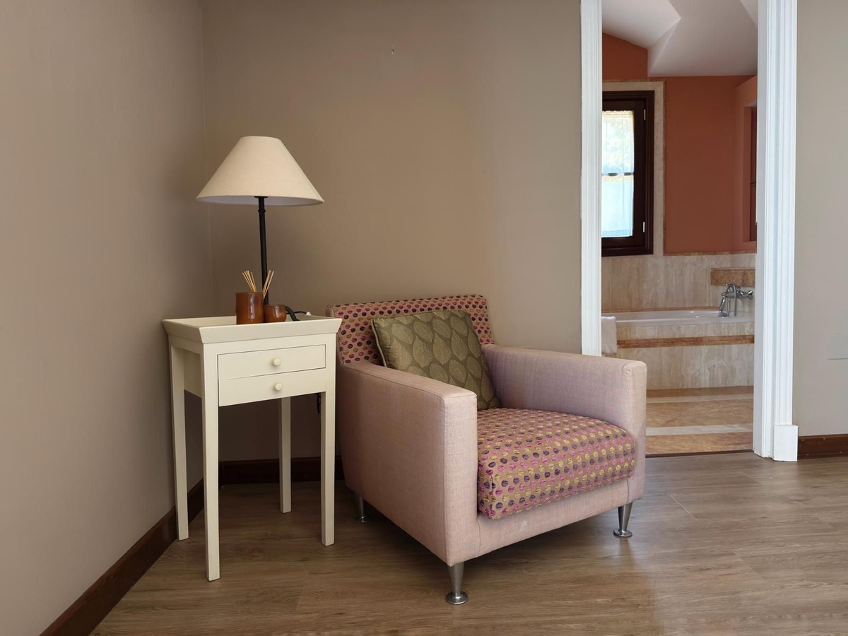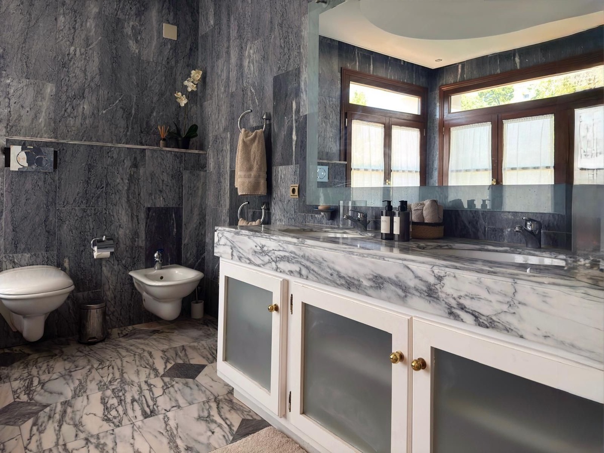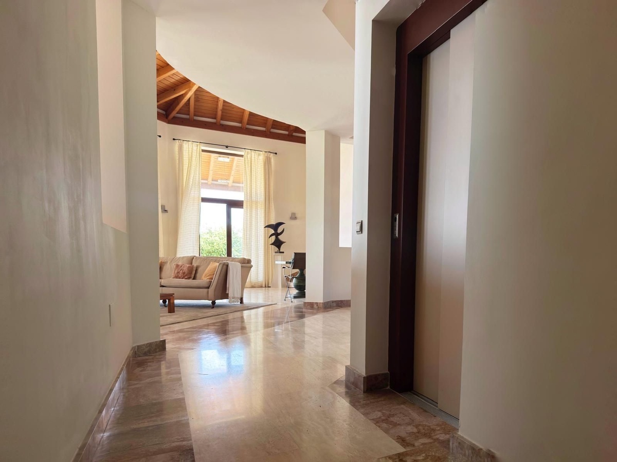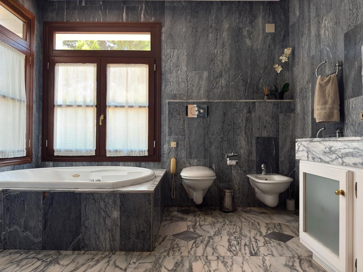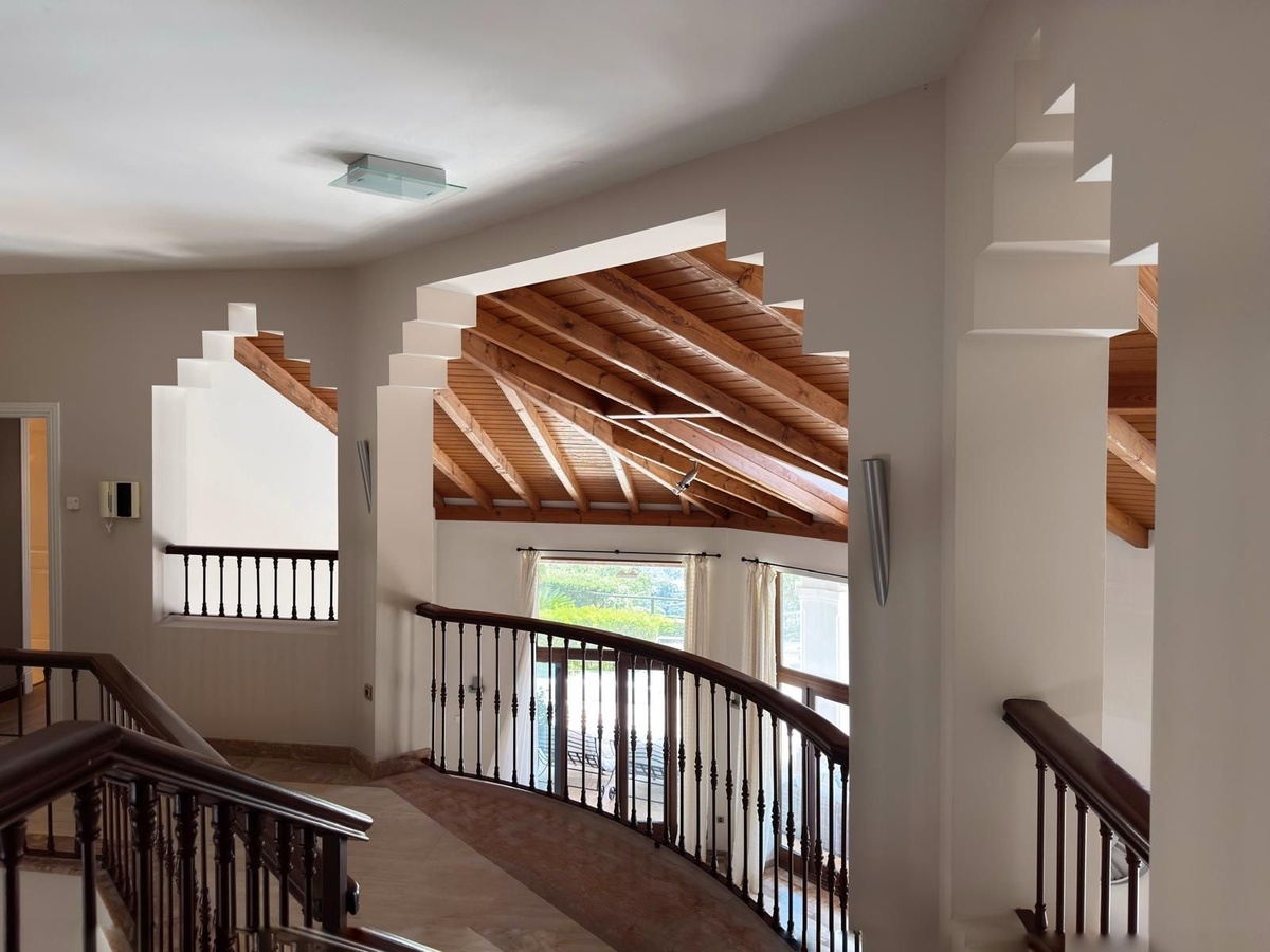 Outside, the beautifully landscaped gardens surround a spectacular, oversized swimming pool—ideal for lounging in the sun or enjoying tranquil evenings in an idyllic setting. Additional features include a garage with space for three cars, a storage room, and complete privacy within a serene and secure environment.