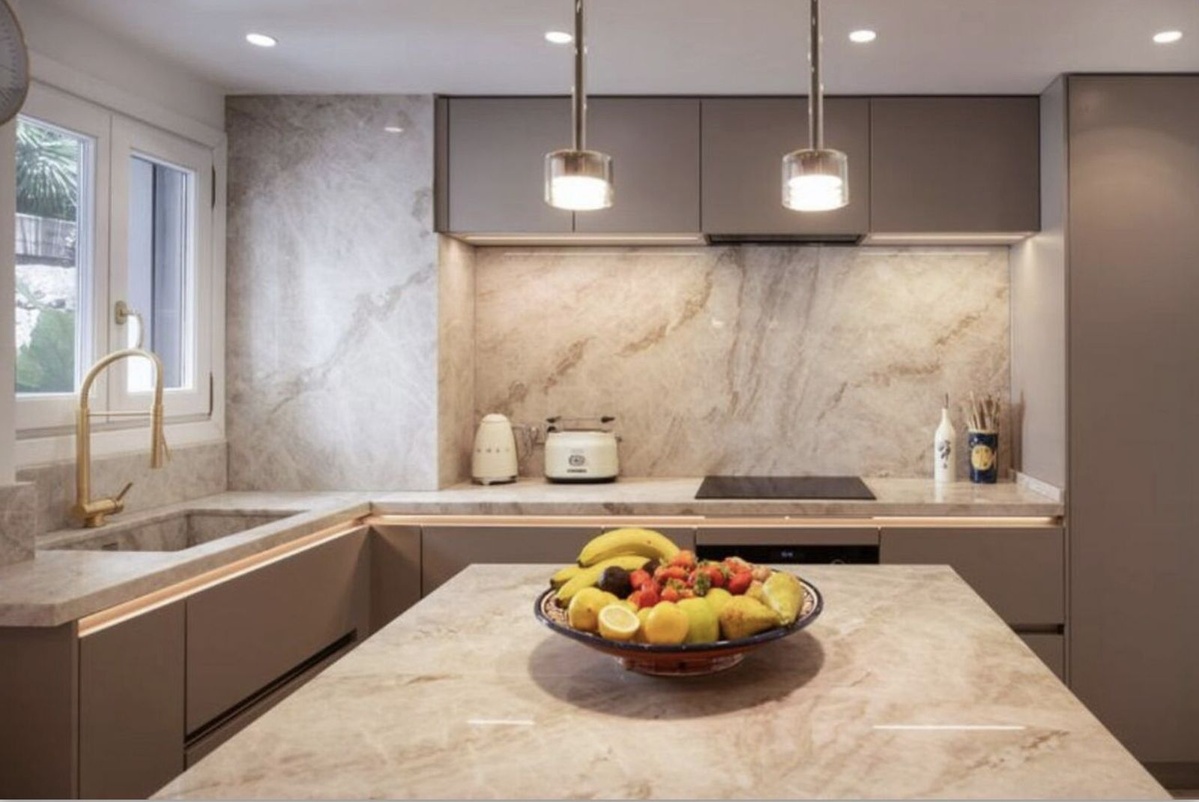 Imagine preparing meals in the large, modern kitchen with a dedicated office area, or unwinding in one of two distinct living rooms that open to generous terraces—perfect for soaking in the Mediterranean lifestyle. The ground floor features two cozy bedrooms that share a sleek, contemporary bathroom. Upstairs, the expansive master suite awaits, complete with a private dressing area, a luxurious new bathroom, and a sun-drenched terrace showcasing captivating sea views.