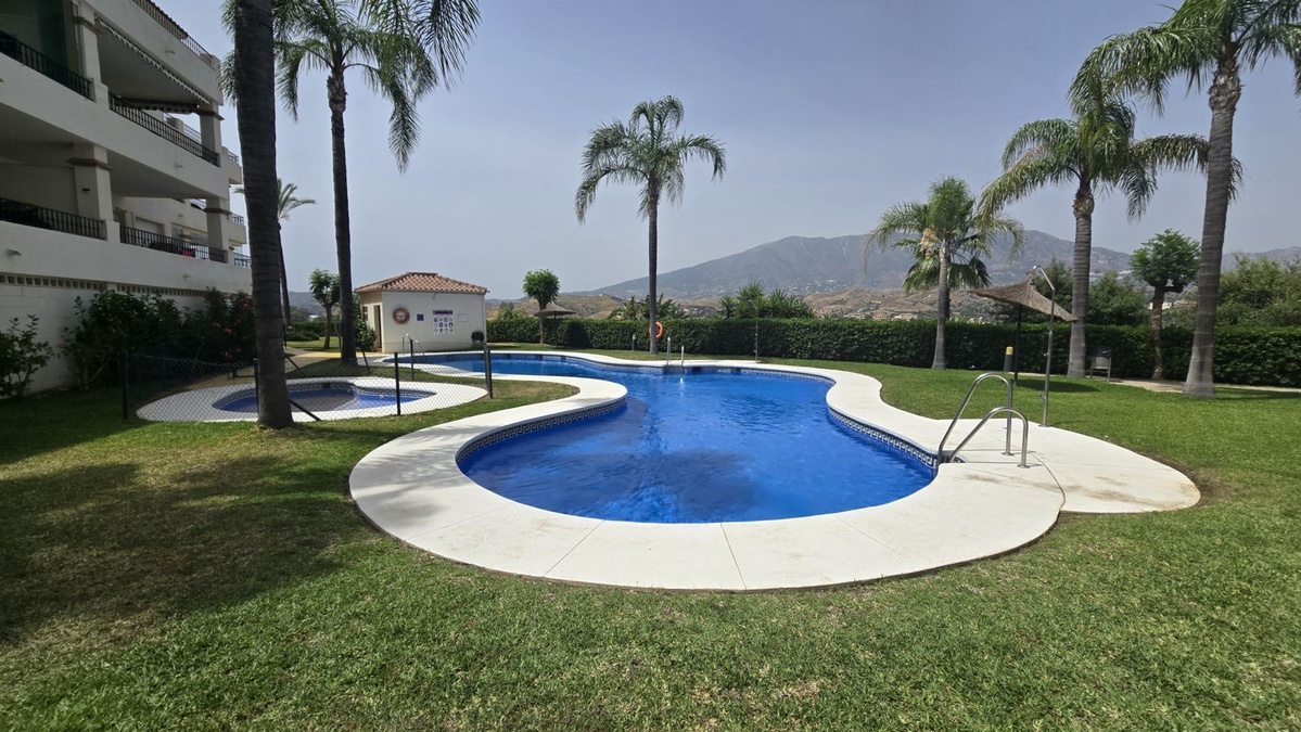 Beliggende i et roligt, sikkert og velholdt kompleks tæt på Mijas Golf, er denne ejendom ideel som permanent bolig, sommerhus eller investeringsmulighed på Costa del Sol.