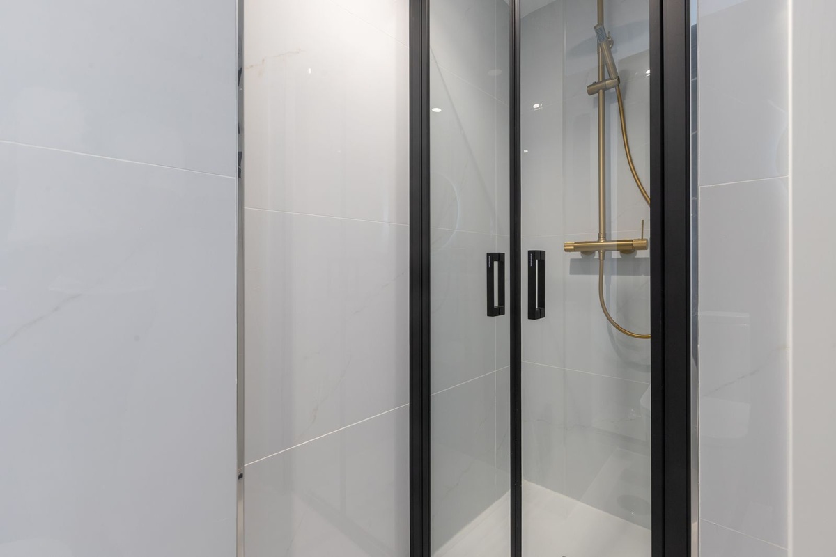 Begge soveværelser er udvendige: soveværelset modtager eftermiddagssol, mens gæst soveværelset nyder morgenlys.Hvert værelse har indbyggede garderobeskabe, og de to badeværelser er afsluttet med elegante, moderne præg og materialer af høj kvalitet.Hver detalje er blevet omhyggeligt udformet til at tilbyde komfort og stil-fra dobbeltglaserede vinduer, aircondition, til stilfulde finish i hele ejendommen.