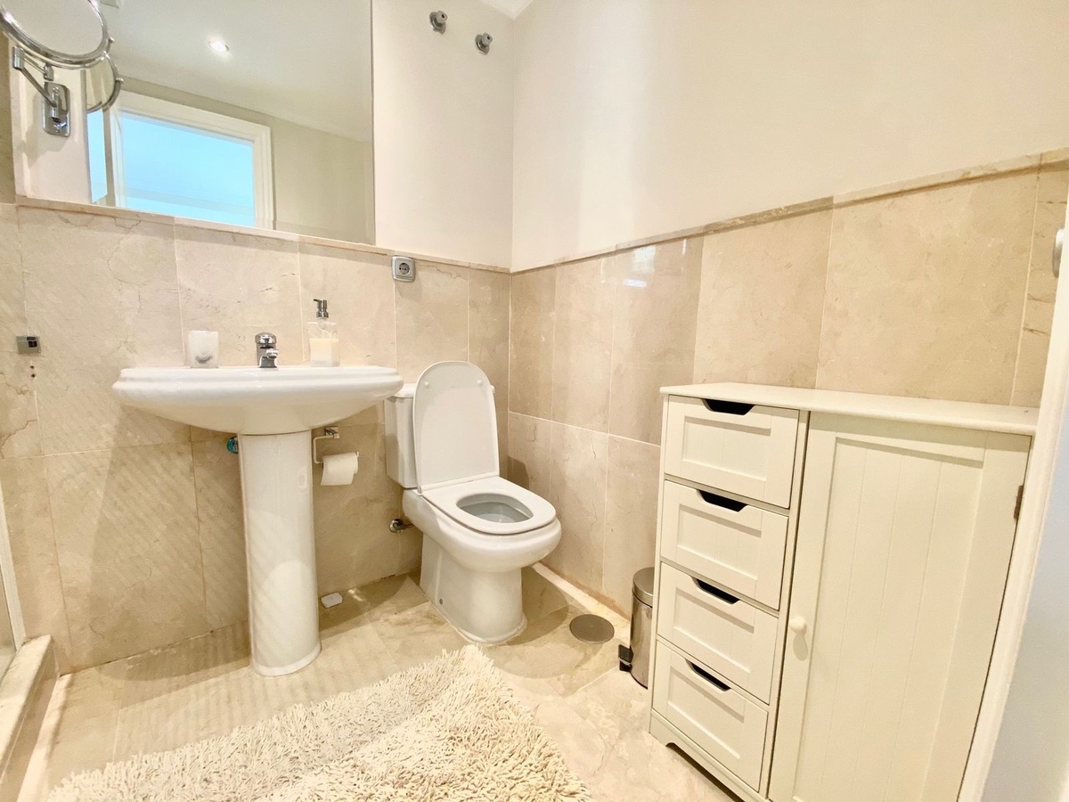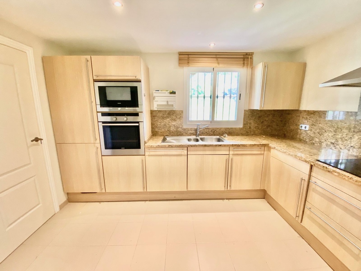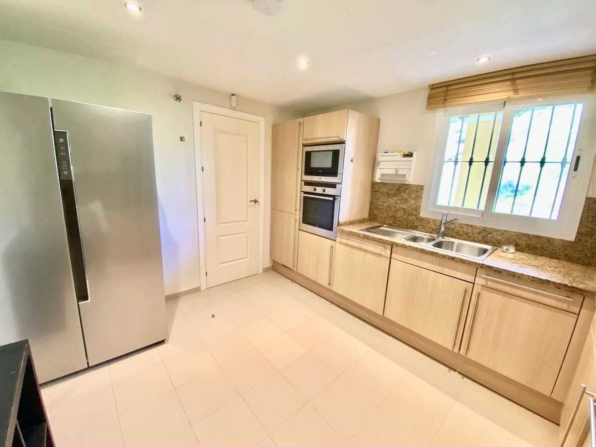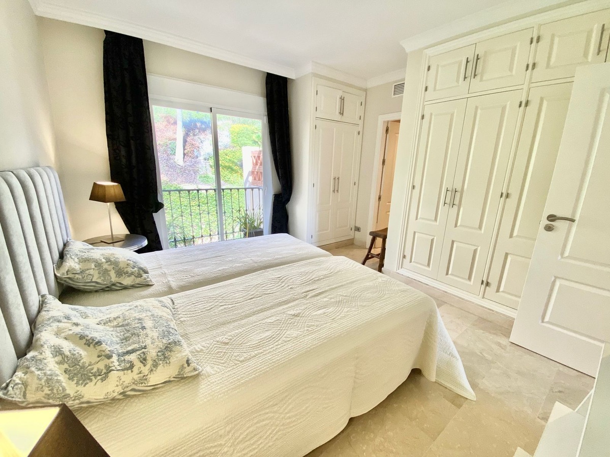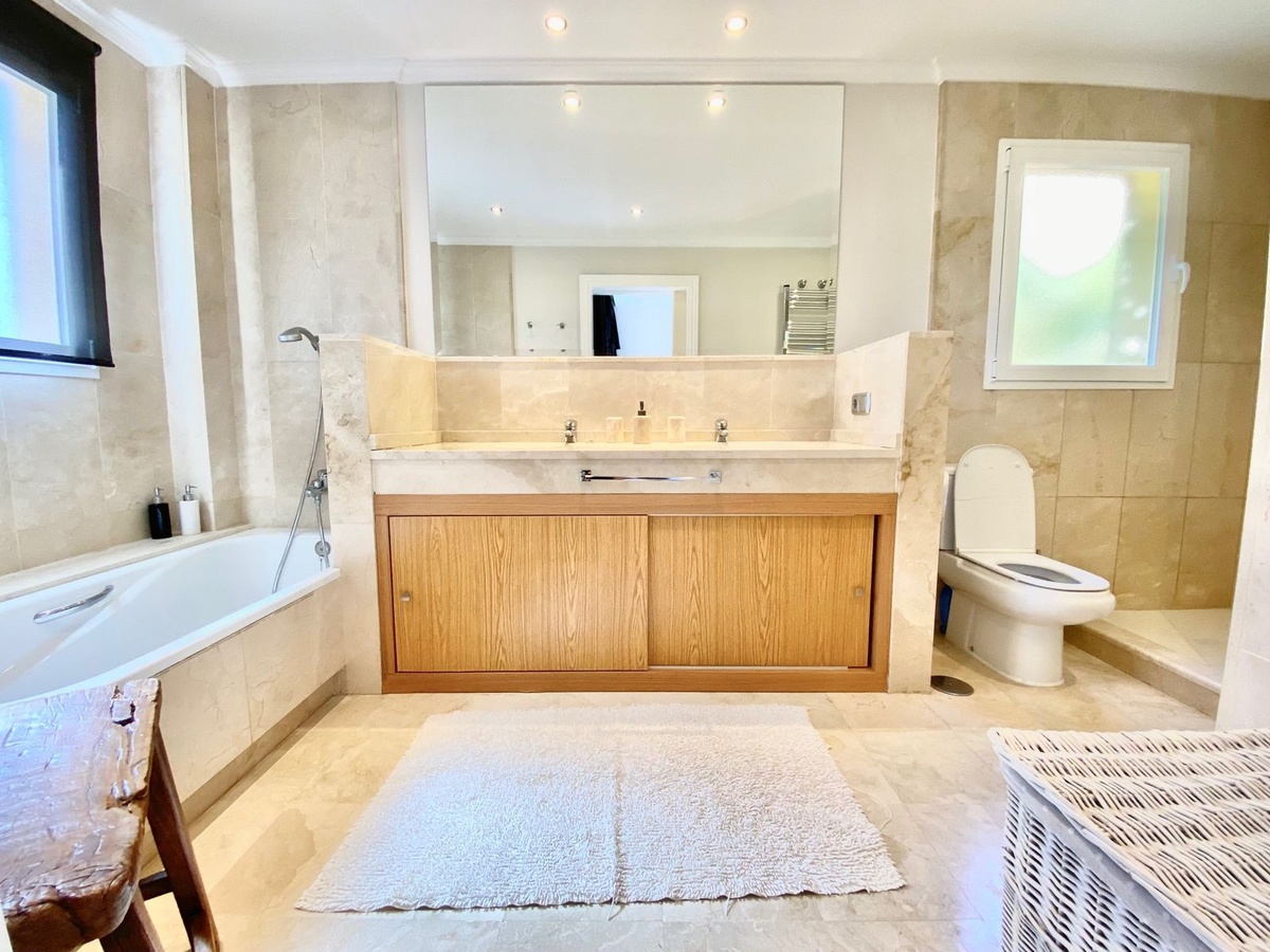 It features 2 bedrooms, 3 bathrooms, and a spacious 34 m² sunny terrace with views of the sea, mountains, and golf course.