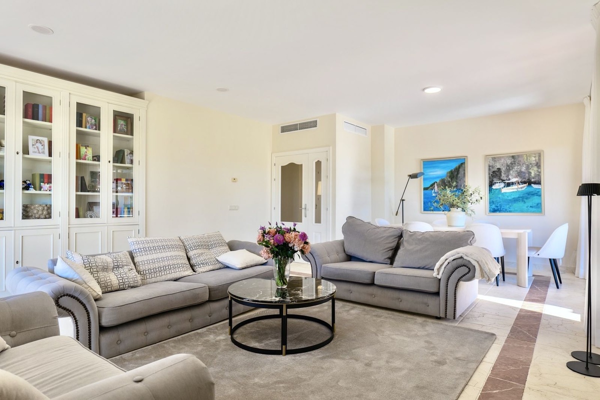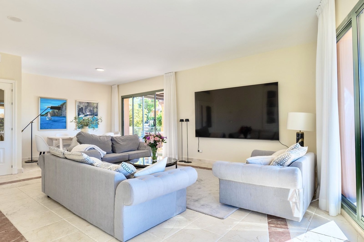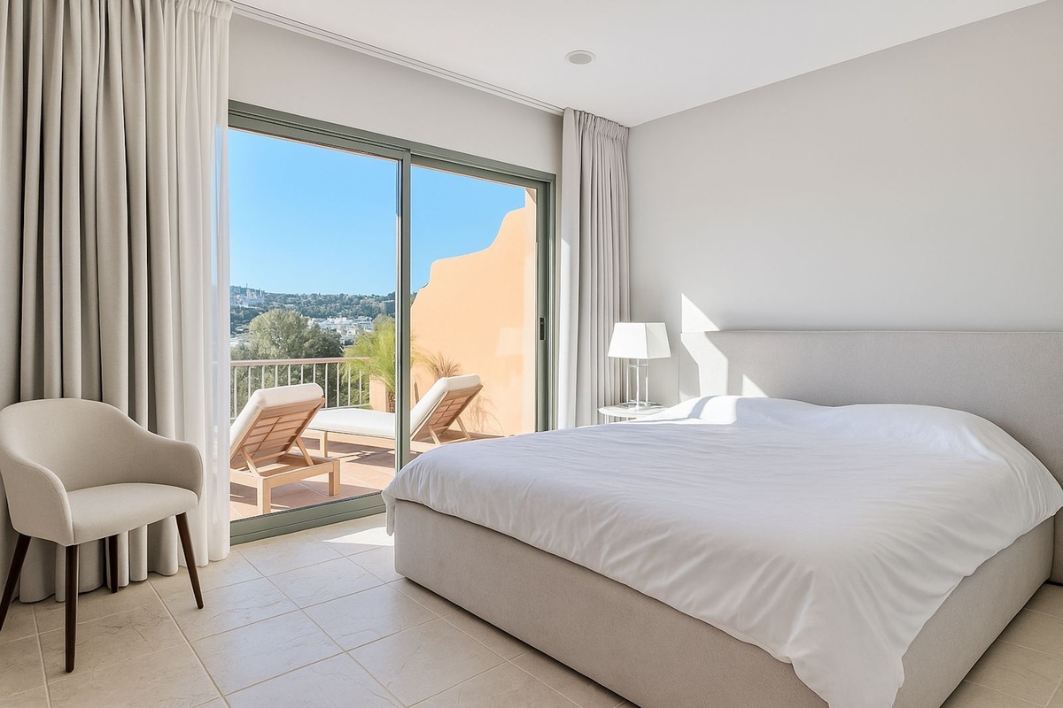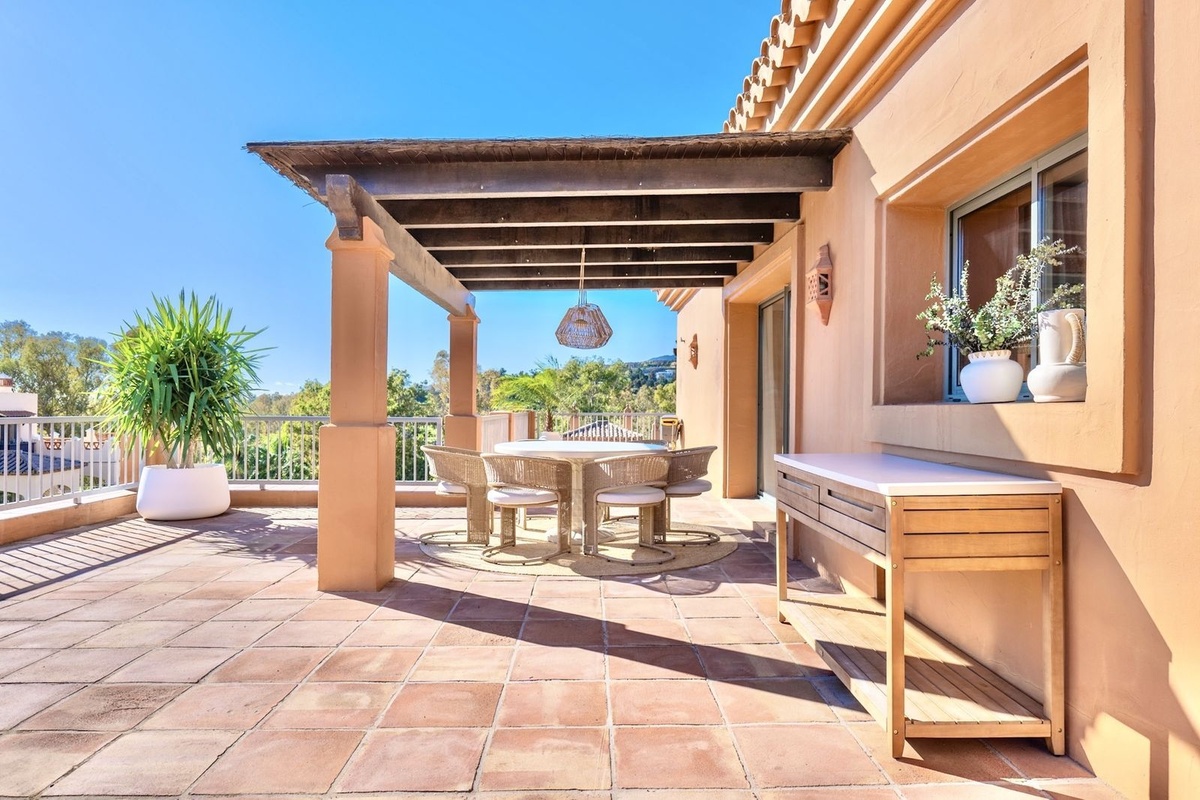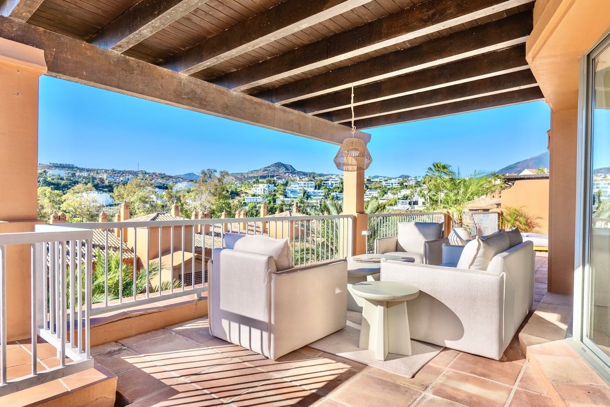Denne elegante penthouse med 3 soveværelser er tilgængelig nu til langtidsleje og ligger i det prestigefyldte Benatalaya-boligkompleks i Estepona. Dette hjem ligger i et lukket samfund med 24-timers sikkerhed, smukt vedligeholdte fælleshaver og flere swimmingpools og tilbyder en fredelig livsstil kun en kort køretur fra stranden, golfbaner og alle vigtige faciliteter.