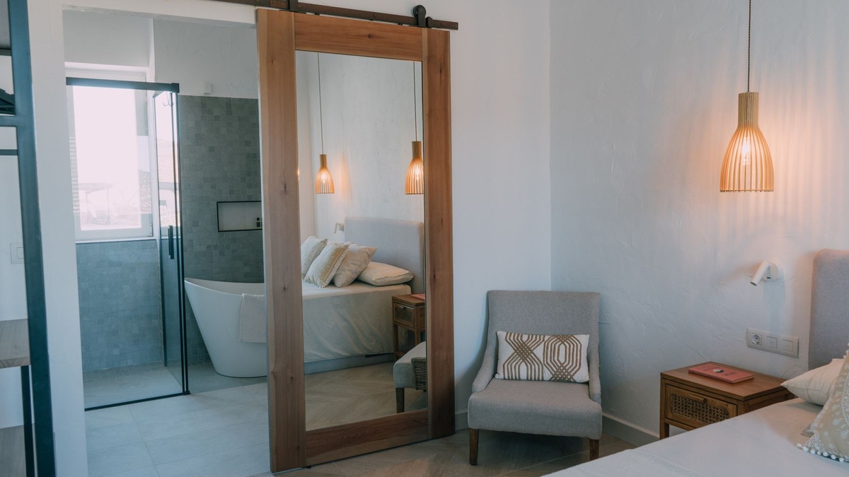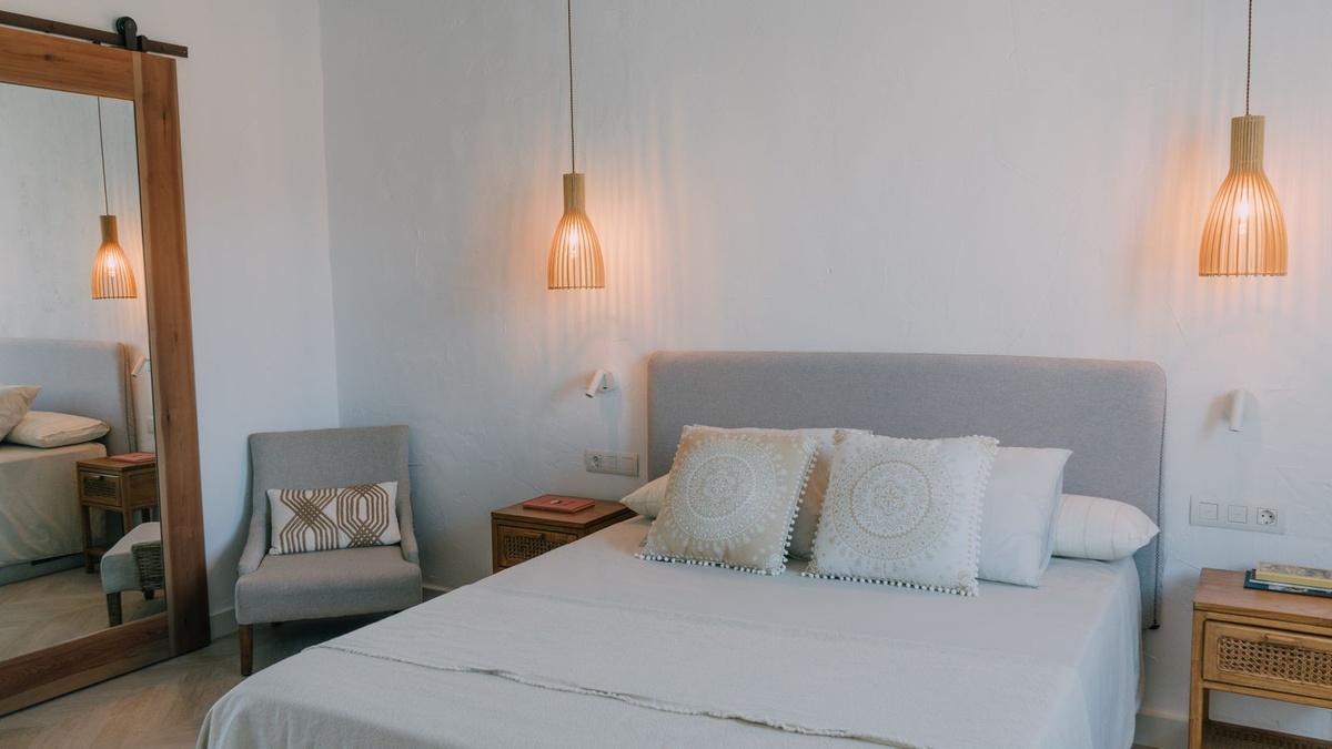 Outside you'll find a swimming pool, and the well-equipped property includes its own well and hydraulic pump for self-sufficient water supply and solar panels for electricity supply. While pockets of greenery are present, the vistas remain open and unrestricted, providing serenity and privacy.