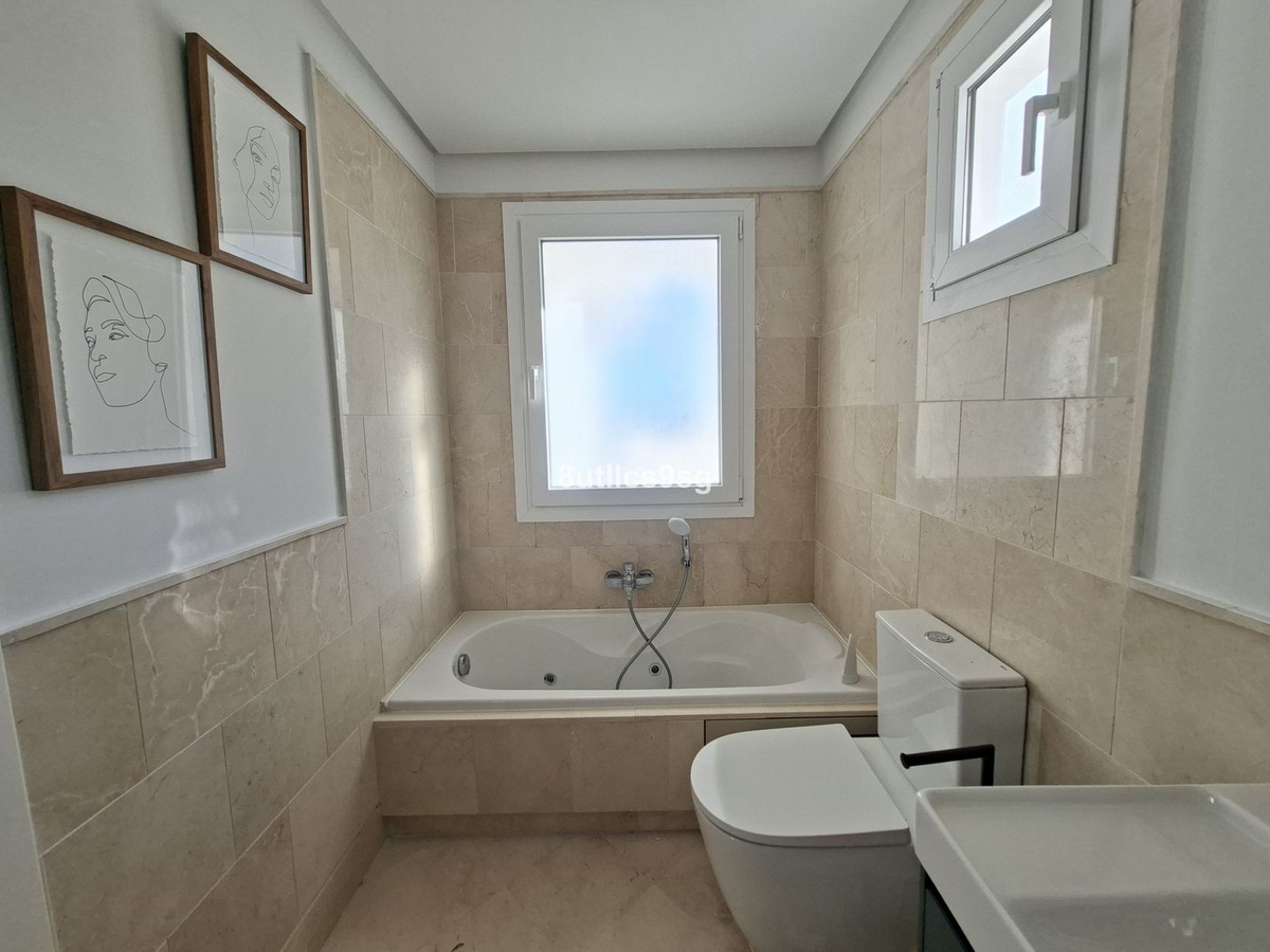 Ejendommen byder på en rummelig og lys stue-alrum med udgang til stor terrasse, perfekt til udendørs afslapning og hygge.Det separate, fuldt udstyrede køkken har førsteklasses Siemens-apparater og forbinder også direkte til terrassen.Det består af to soveværelser og to badeværelser, herunder en master suite med en-suite badeværelse og privat terrasse.