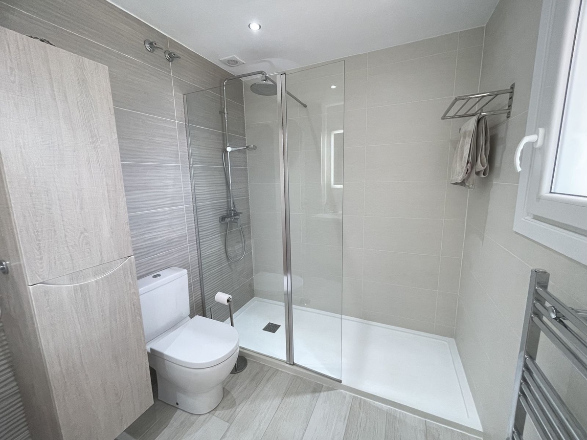 Indgangsniveauet tilbyder en hyggelig stue med en pejs - perfekt til kølige vinteraftener. Det fuldt udstyrede køkken giver rigelig opbevaringsplads og er bekvemt placeret ved siden af den rummelige sydvendte terrasse, komplet med en jacuzzi og plads til et spisebord - et ideelt sted til afslappende eller underholdende familie og venner.På denne etage er der også en privat 9 m² gårdhave, et lille lagerrum og et skab, der let kan konverteres tilbage til et gæstetoilet, da det tidligere var (VVS og elektricitet er allerede på plads).