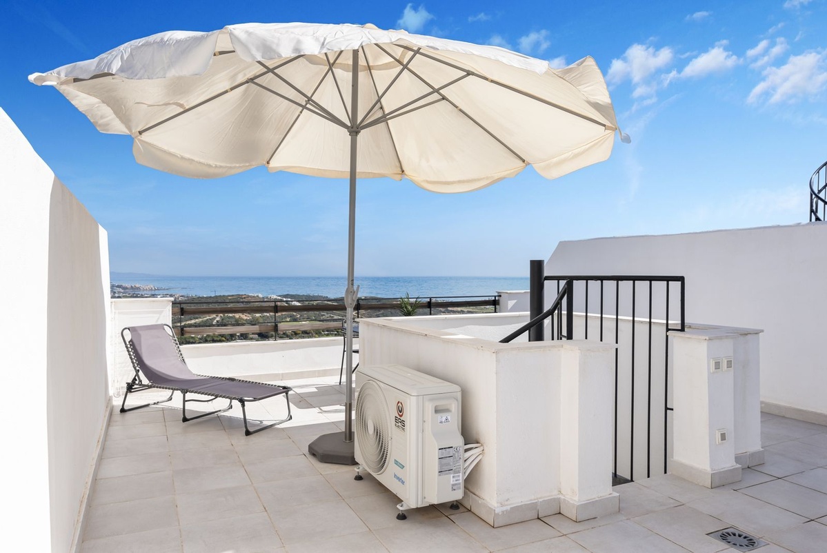 Denne fantastiske lejlighed tilbyder alt, hvad du behøver for et behageligt og afslappende ophold. Med 2 soveværelser, 2 badeværelser, en smuk terrasse og en rummelig tagterrasse er det det perfekte sted at nyde solen og den betagende udsigt.