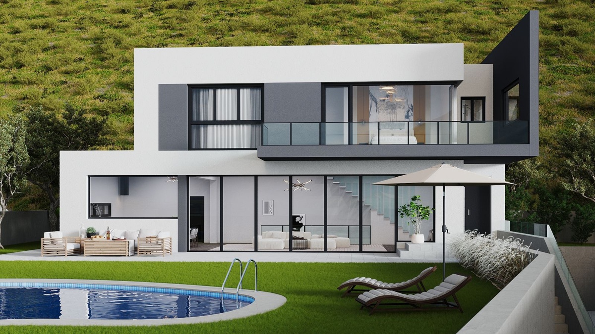 De udendørs områder er lige så imponerende og kan prale af en storslået swimmingpool, anlagte haver og elegante solbadningszoner-den perfekte ramme for at nyde året rundt Middelhavets livsstil.