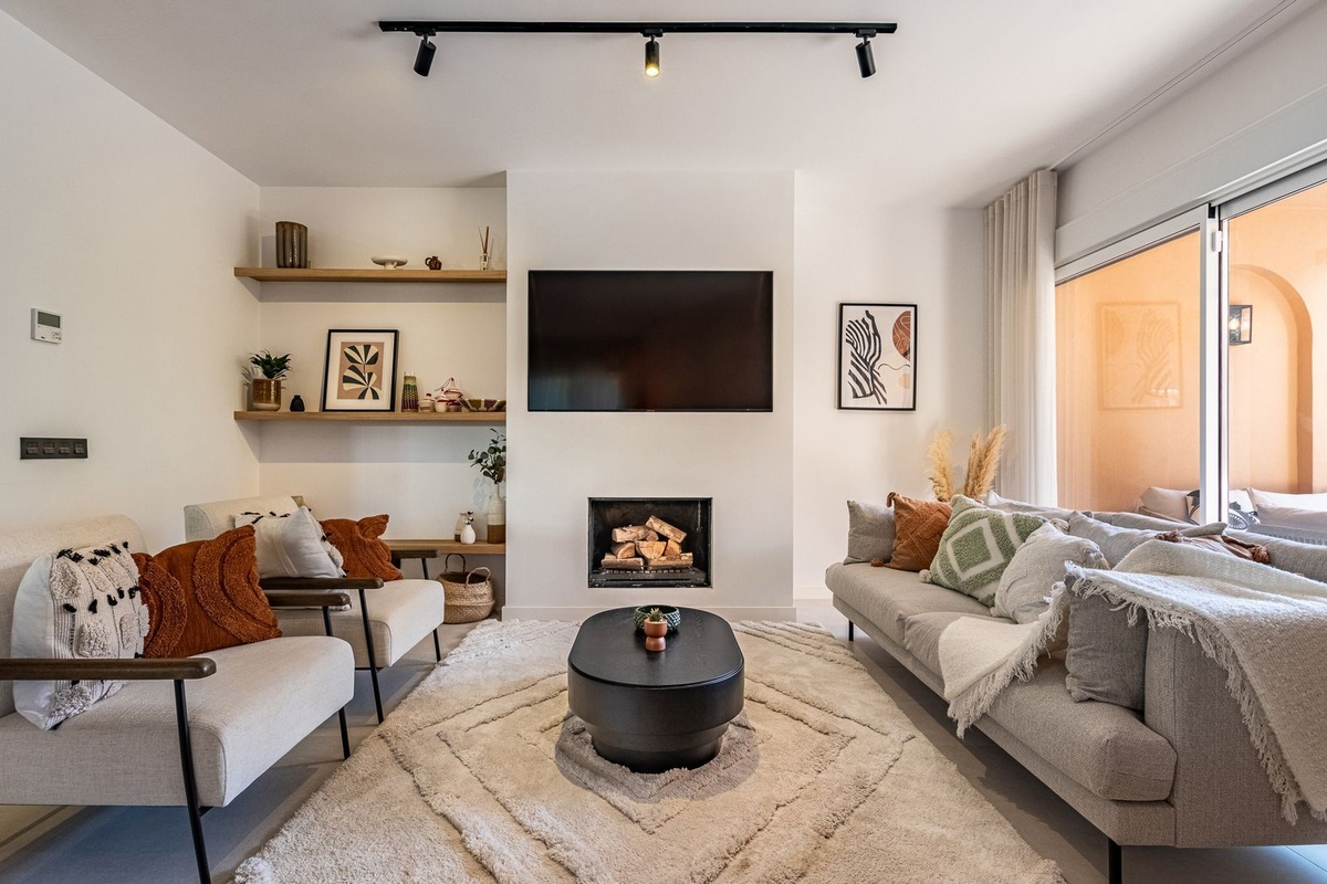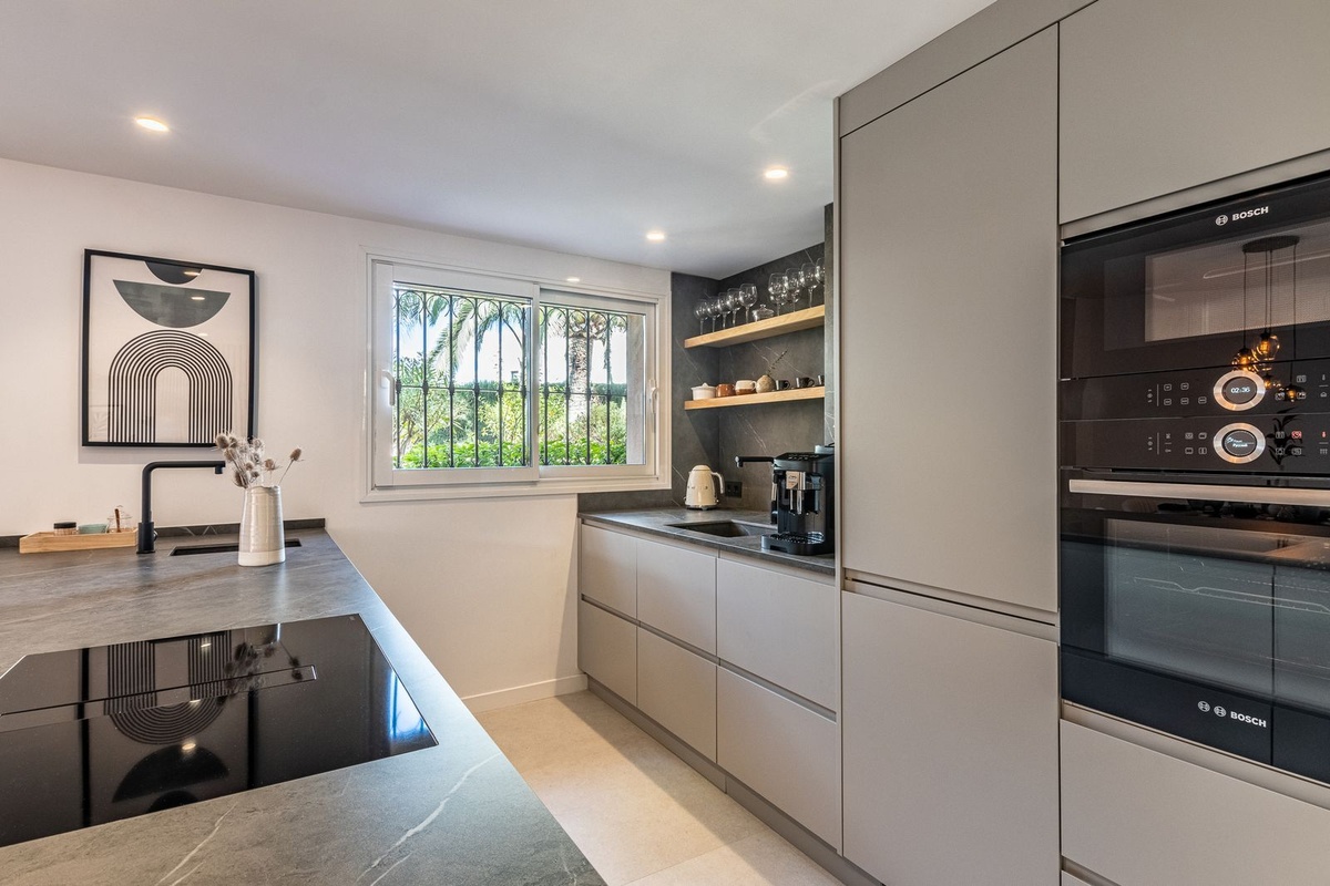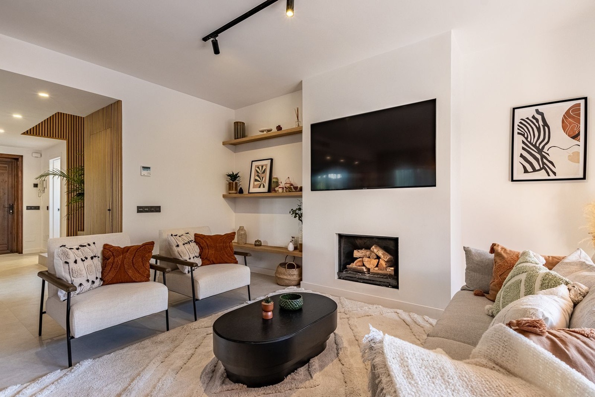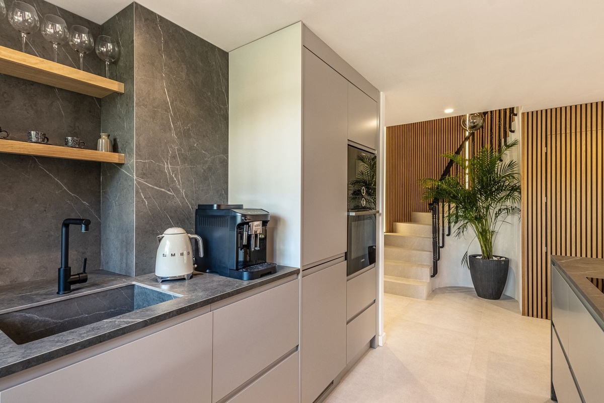 Top modern, large home for the discerning buyer looking for ultimate luxury and comfort. It has been completely reformed to the highest standard, offering 3 bedrooms, 3 bathrooms and a guest toilet. As entering, you are directly welcomed by an open floorplan, with direct access to a large terrace with barbeque. The livingroom has a fireplace, bespoke wine cabinet and exquisite design. Large, Danish designer kitchen with a silestone counter top.