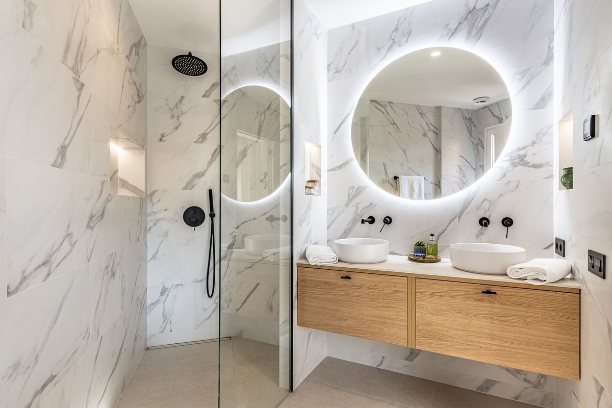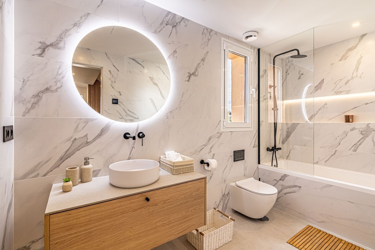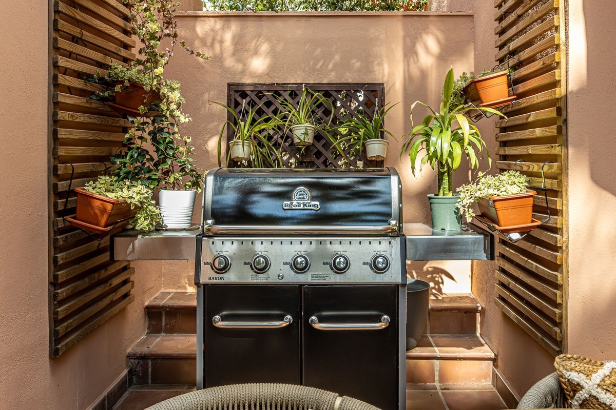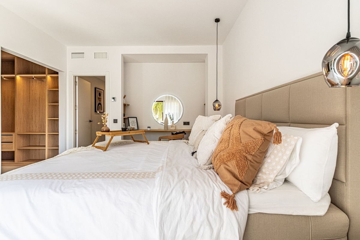 Top modern, large home for the discerning buyer looking for ultimate luxury and comfort. It has been completely reformed to the highest standard, offering 3 bedrooms, 3 bathrooms and a guest toilet. As entering, you are directly welcomed by an open floorplan, with direct access to a large terrace with barbeque. The livingroom has a fireplace, bespoke wine cabinet and exquisite design. Large, Danish designer kitchen with a silestone counter top.