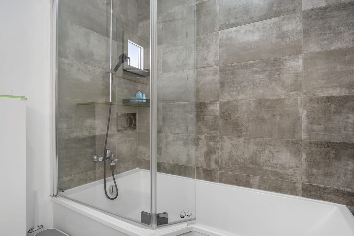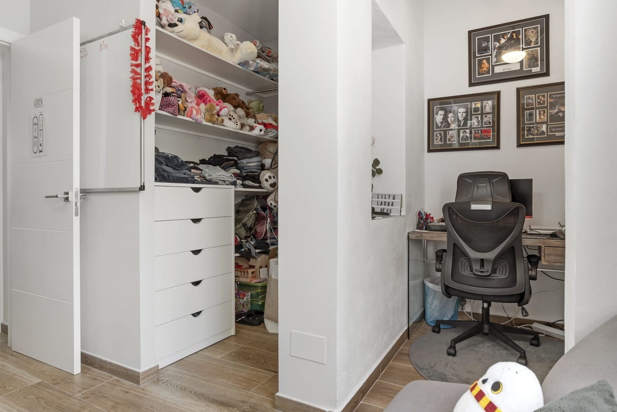 Der er en privat garage med plads til en bil og to motorcykler samt en ekstra udendørs parkeringsplads. Da det er en hjørnelejlighed med kun én direkte nabo, tilbyder hjemmet fremragende privatliv og masser af naturligt lys.