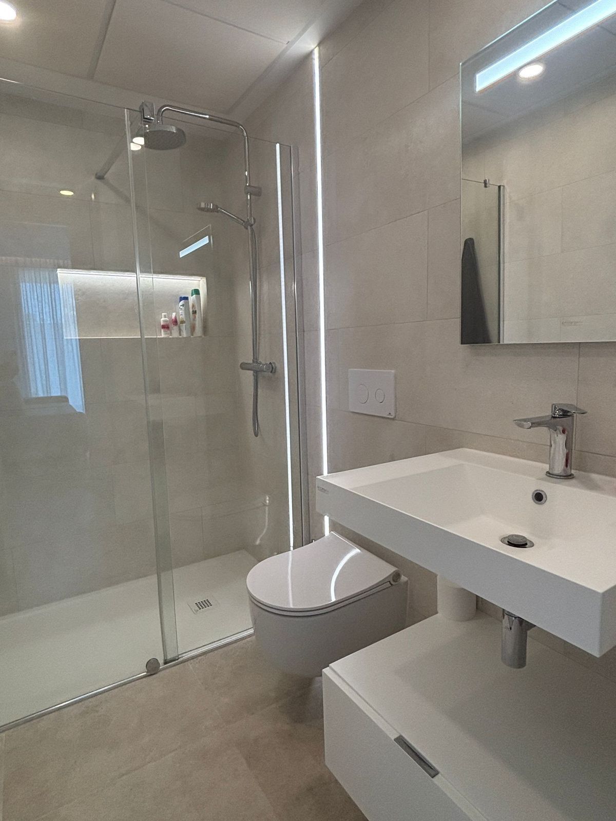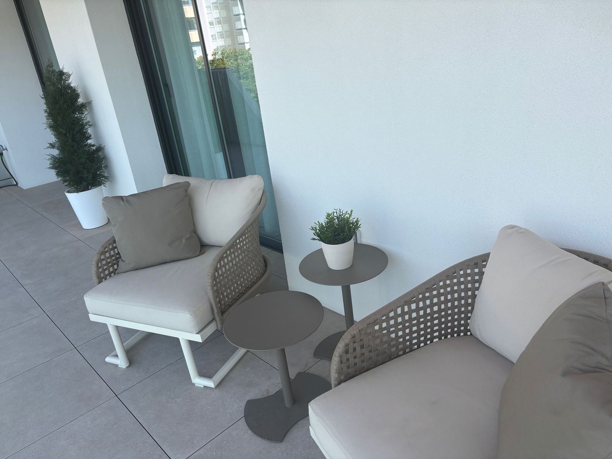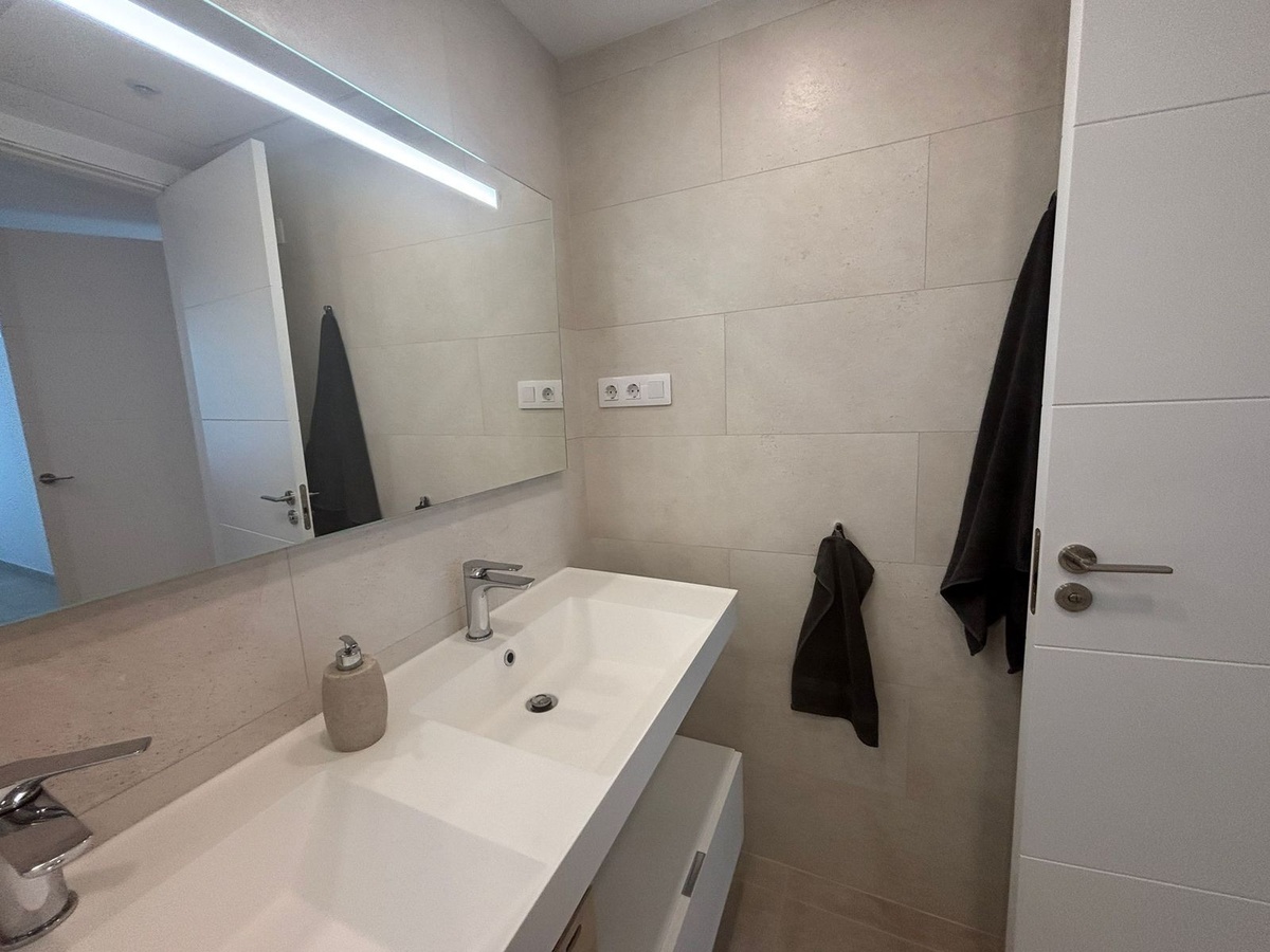 Lejligheden er nybygget til de højeste standarder for kvalitet med en rummelig open-plan ophold, spisning og køkkenområde, 2 soveværelser, 2 badeværelser (en en-suite) og en stor møbleret terrasse tilgængelig fra både soveværelser og stuen.