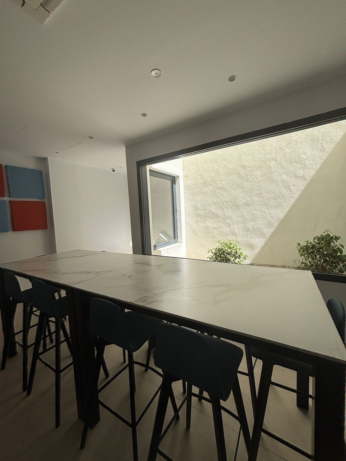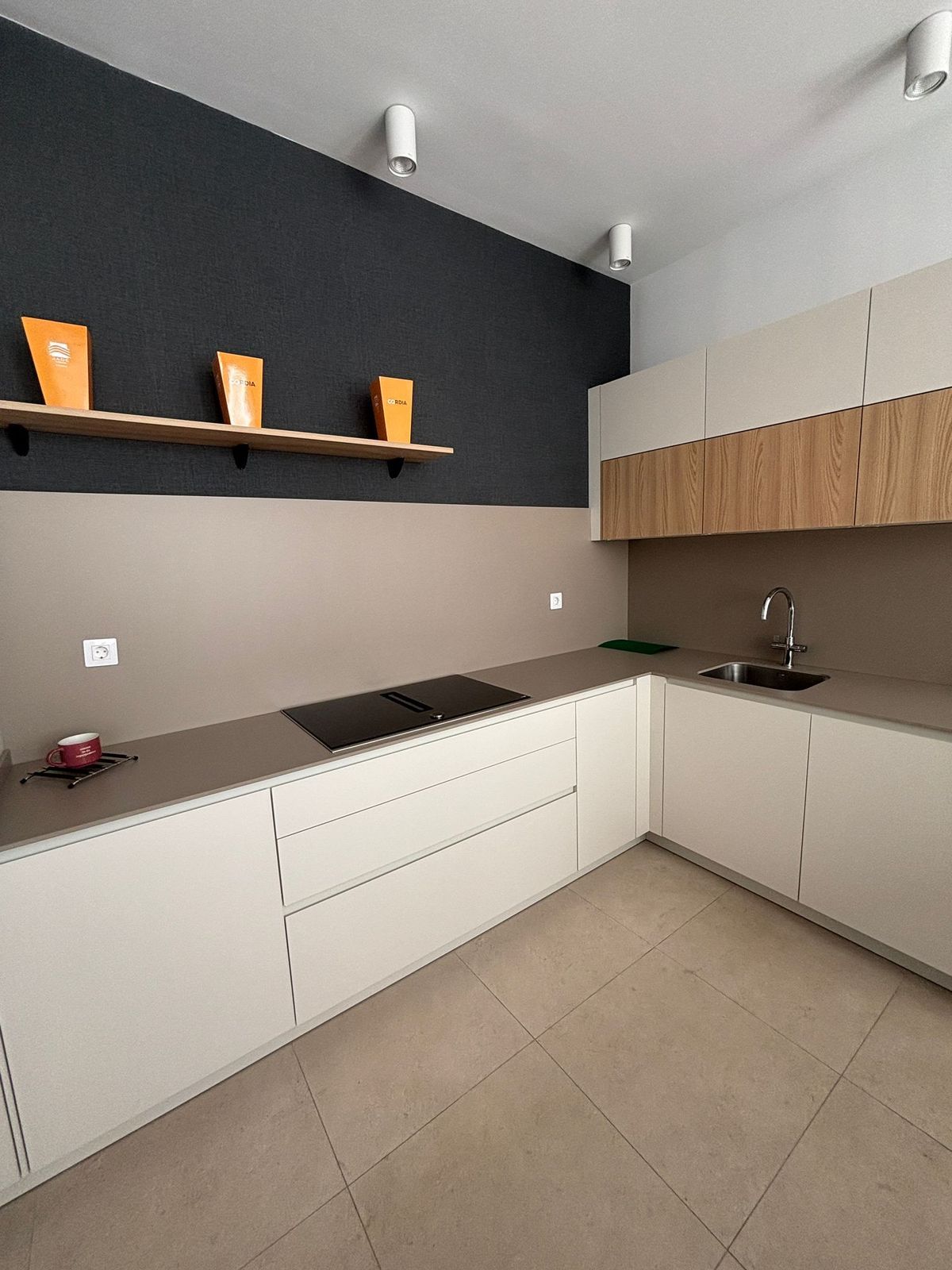 Når du kommer ind i lejligheden, bliver du mødt af et lyst og rummeligt levende spisekød-område, der er elegant møbleret.