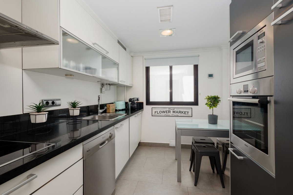 Additionally, the apartment is steps from El Corte Inglés and other supermarkets like Mercadona, making it easy to stock up during your stay. A wide range of restaurants, from El Pimpi to Chiringuito Puente Romano, awaits to explore local and international gastronomy.