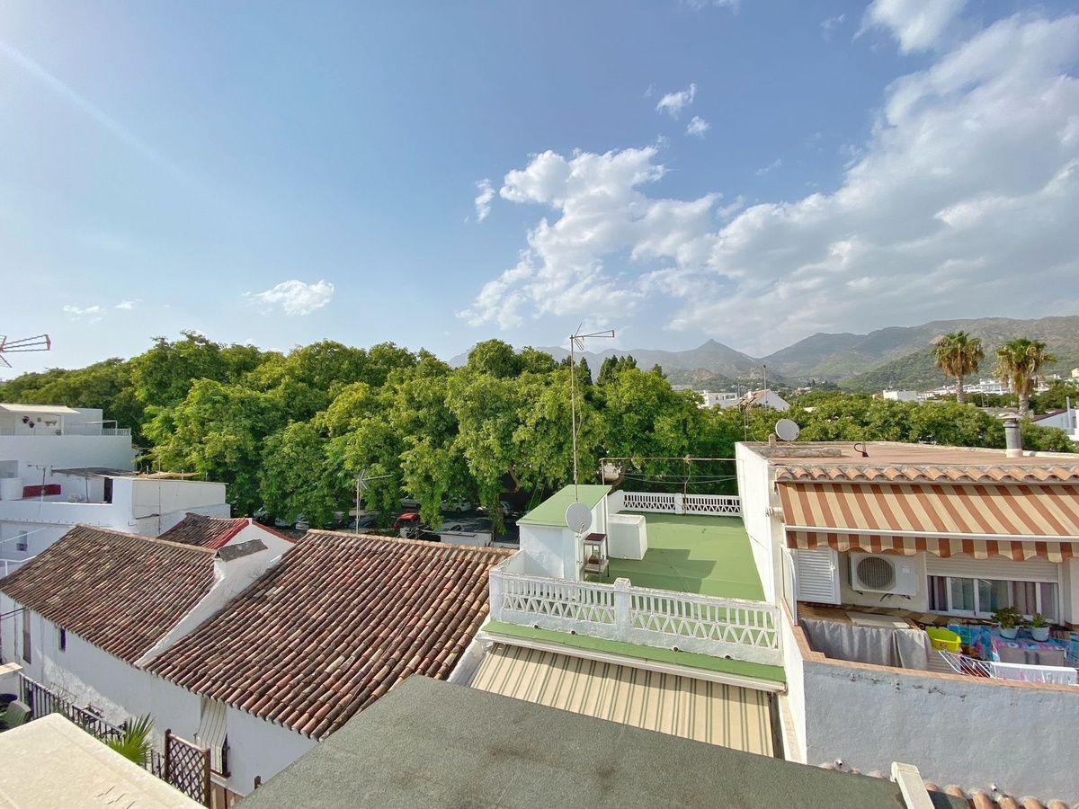 Oplev en sjælden perle i hjertet af Marbellas Casco Antiguo-et charmerende penthouse med et soveværelse med en generøs privat terrasse, der tilbyder uhindret udsigt over den maleriske gamle bydel.