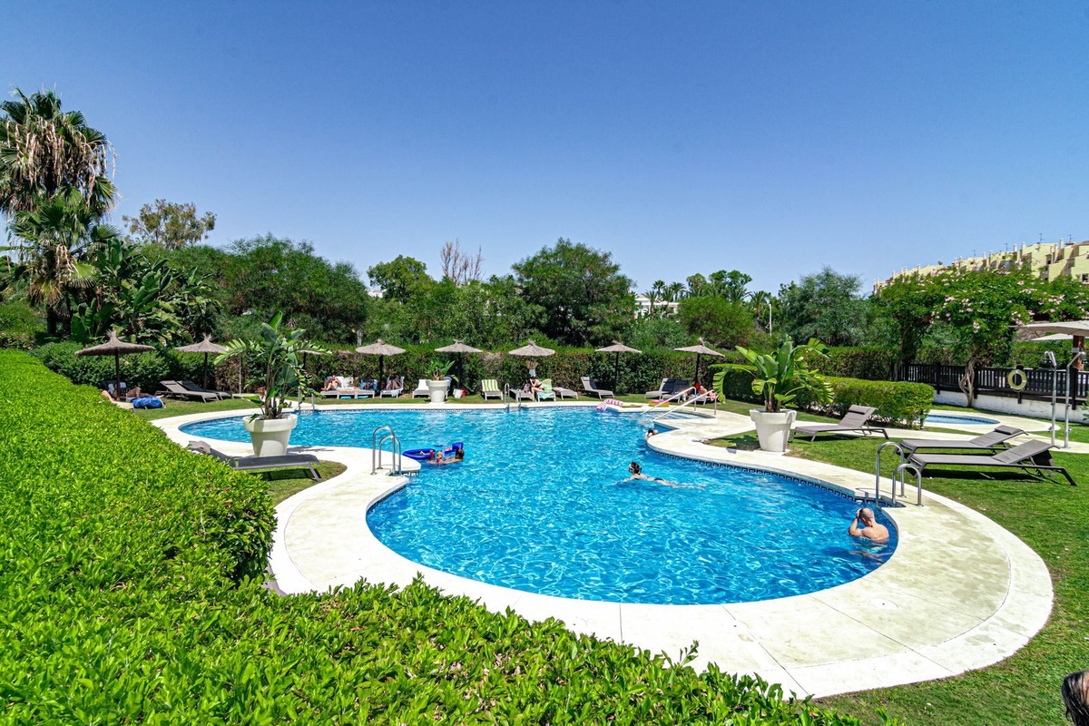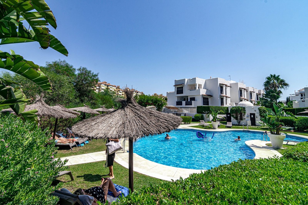 We are proud to present this great priced property in a gated complex with communal gardens, large swimming pool, kids' pool, paddle tennis court, children's playground area, situated in Selwo in the hills to the northeast of Estepona.