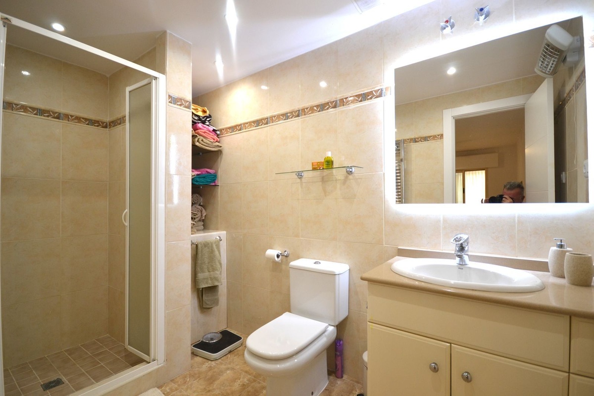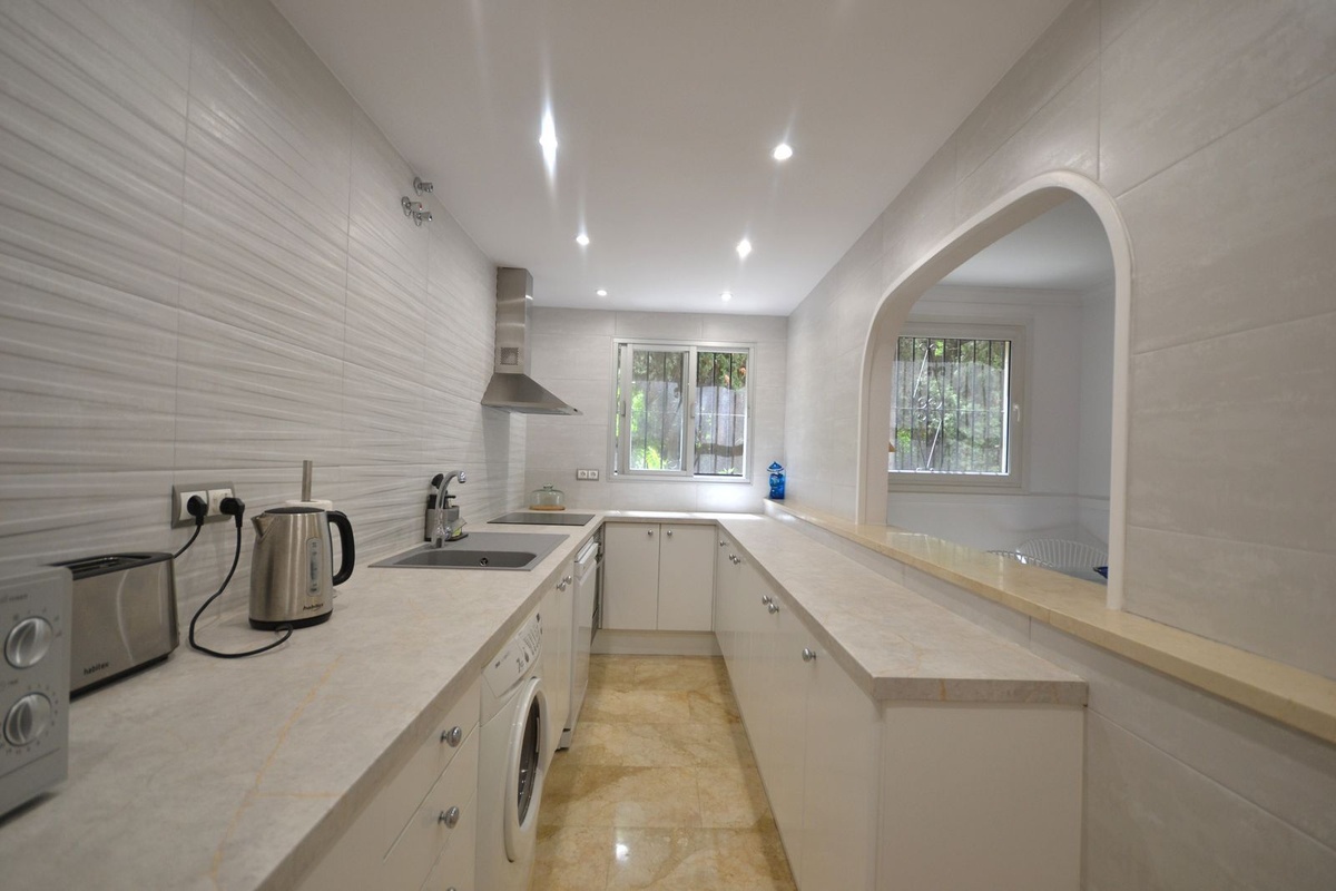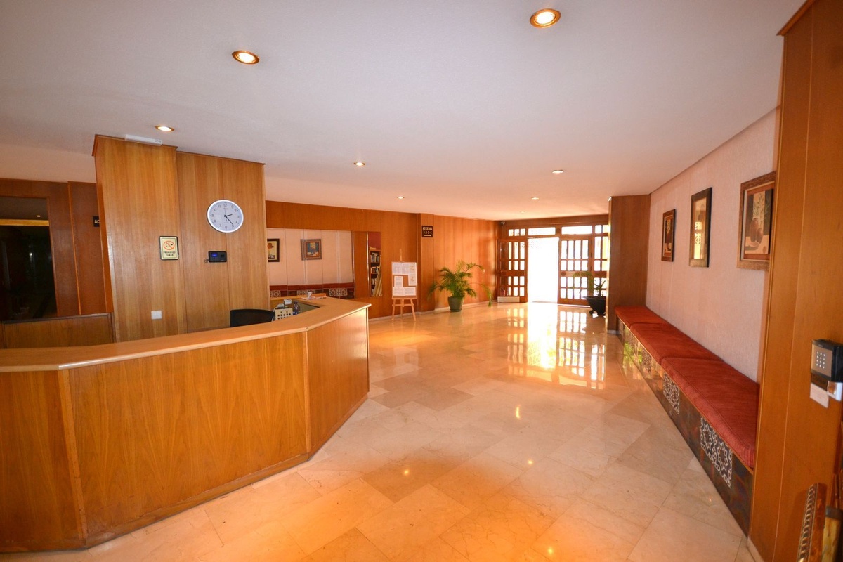 Ejendommen byder dig velkommen med en entré, der fører ind i en generøs opholds- og spisestue, som åbner gennem skydedøre ud til en stor terrasse med direkte adgang til haven og den fælles swimmingpool. En anden terrasse vender ud mod den smukke Parque de la Constitución, der tilbyder rolige omgivelser.
