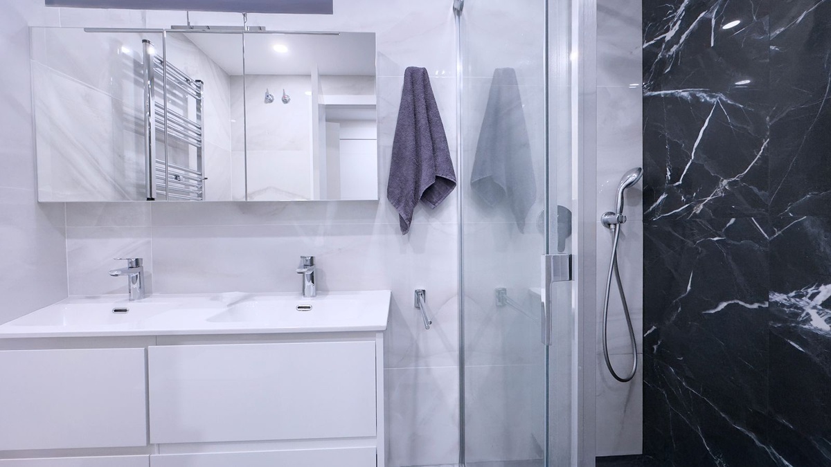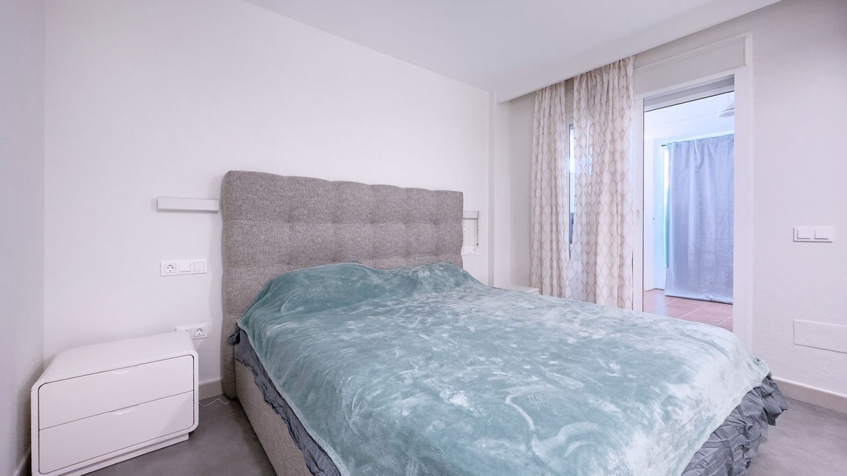 From the master bedroom and living room, you access a generous 28 m² private terrace that extends onto a 30 m² private garden, featuring a barbecue area and beautiful views of the communal pool and tropical gardens—perfect for enjoying the Costa del Sol’s sunny climate year-round.
